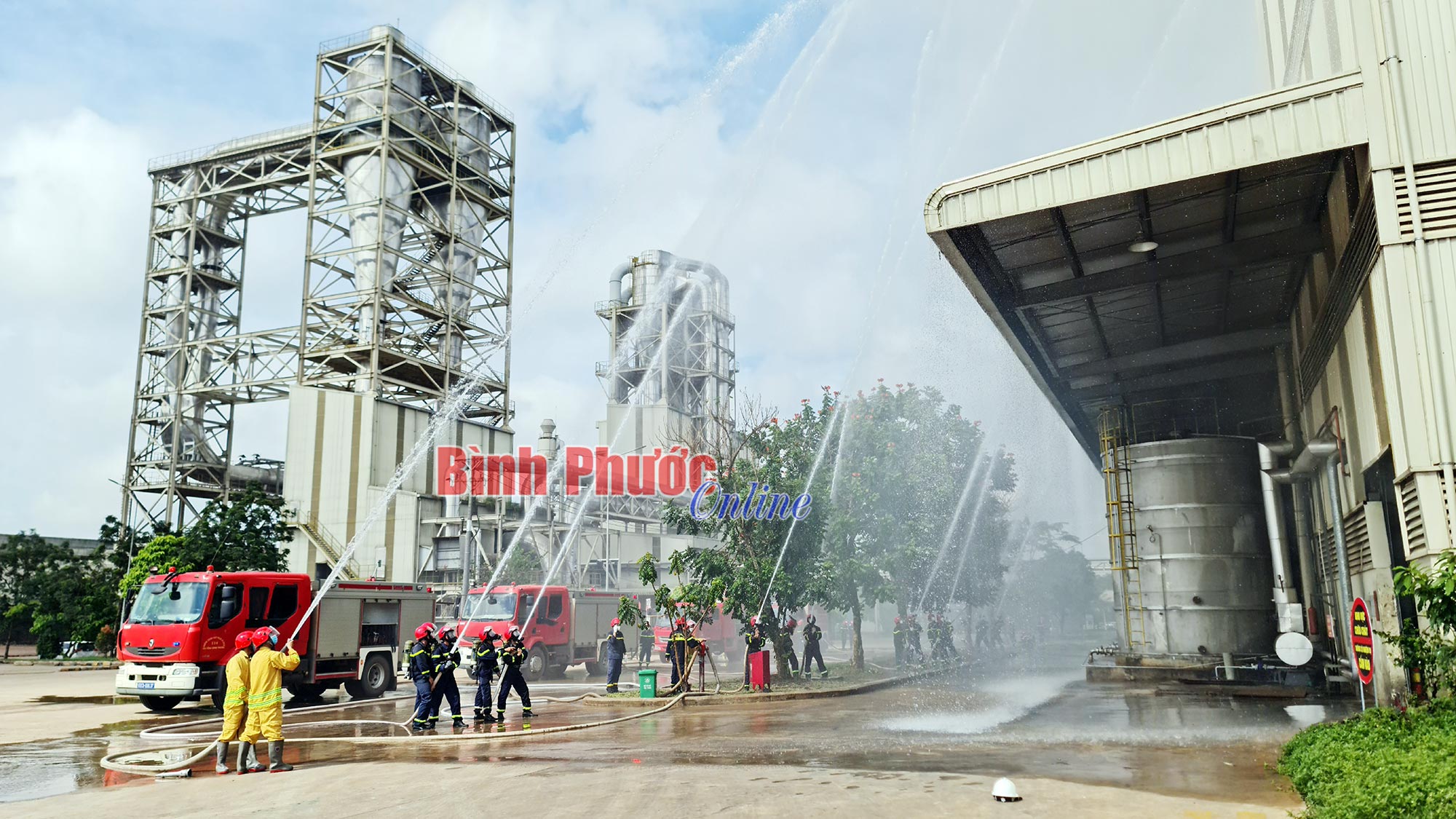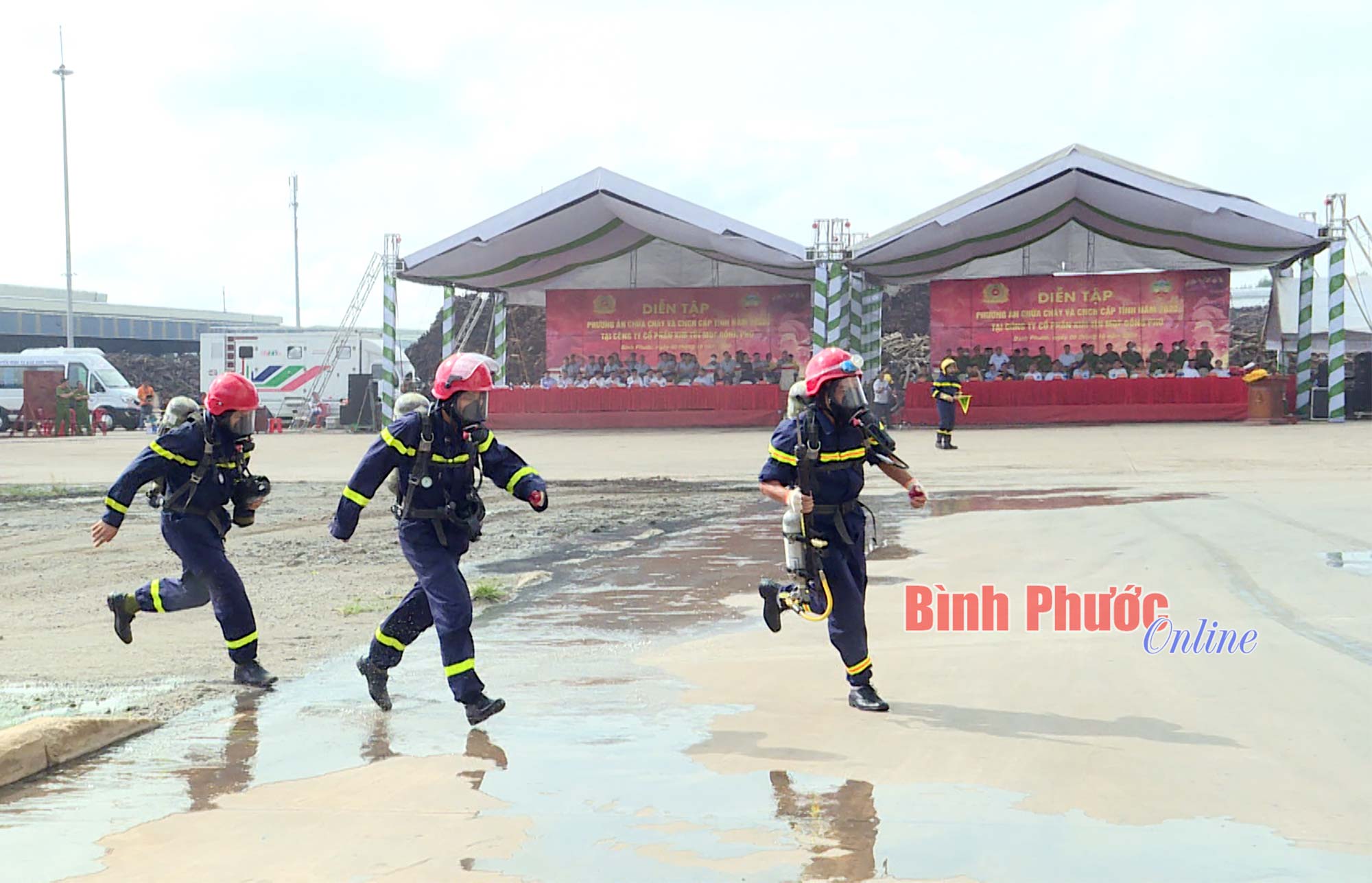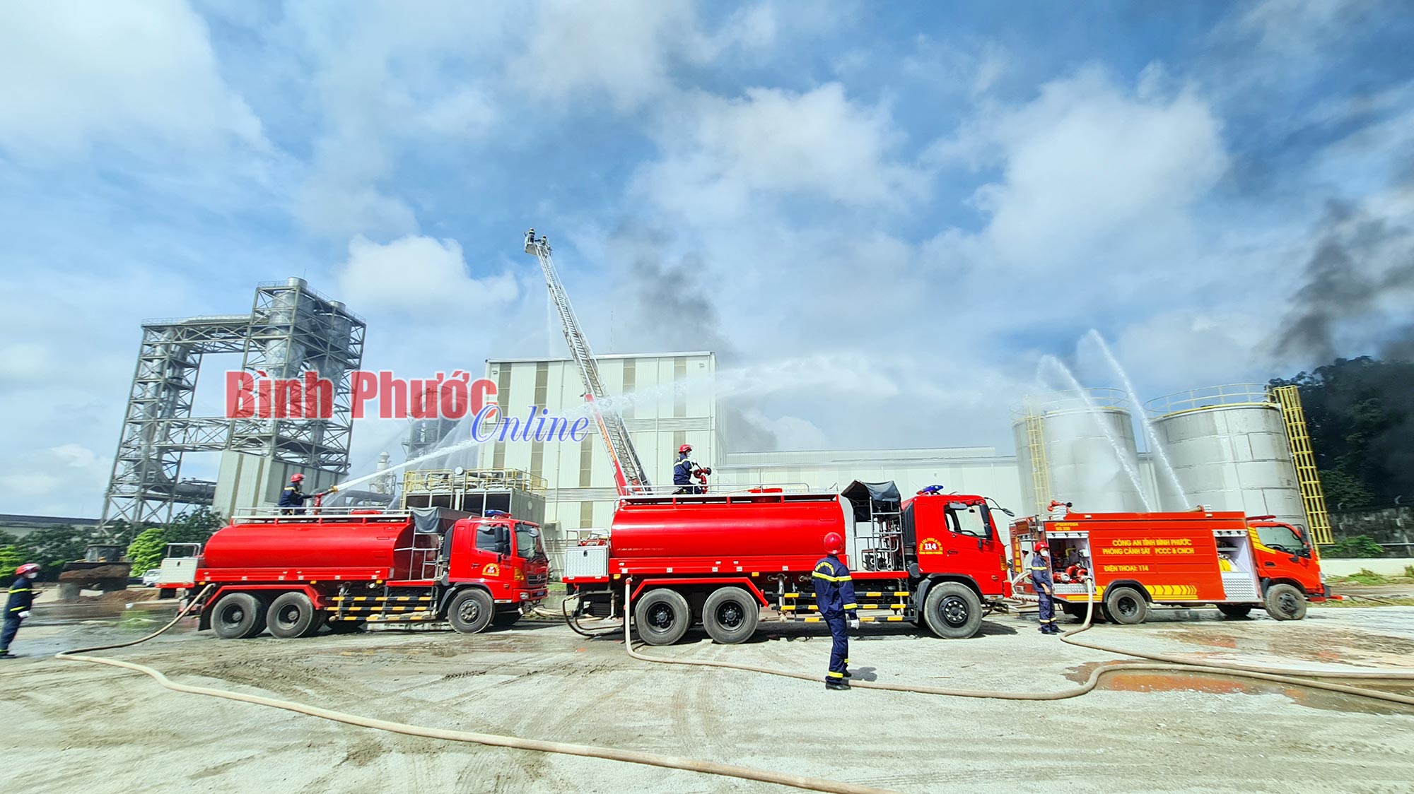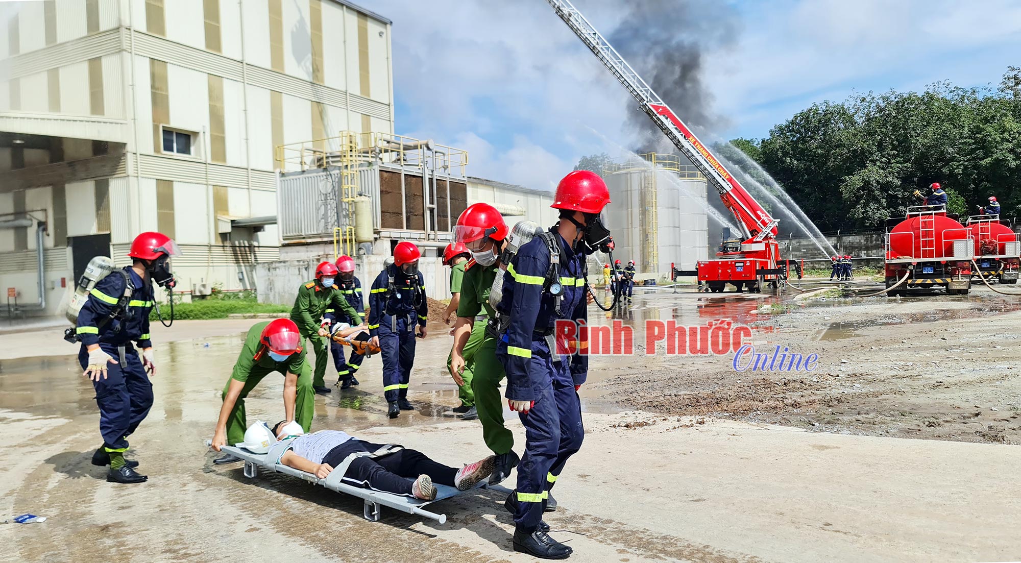 Đây là lần đầu tiên tỉnh Bình Phước tổ chức diễn tập phương án chữa cháy và CNCH đối với nhà máy lớn chứa hóa chất phục vụ sản xuất với quy mô lớn và tập trung đông người, có nhiều lực lượng, phương tiện tham gia.