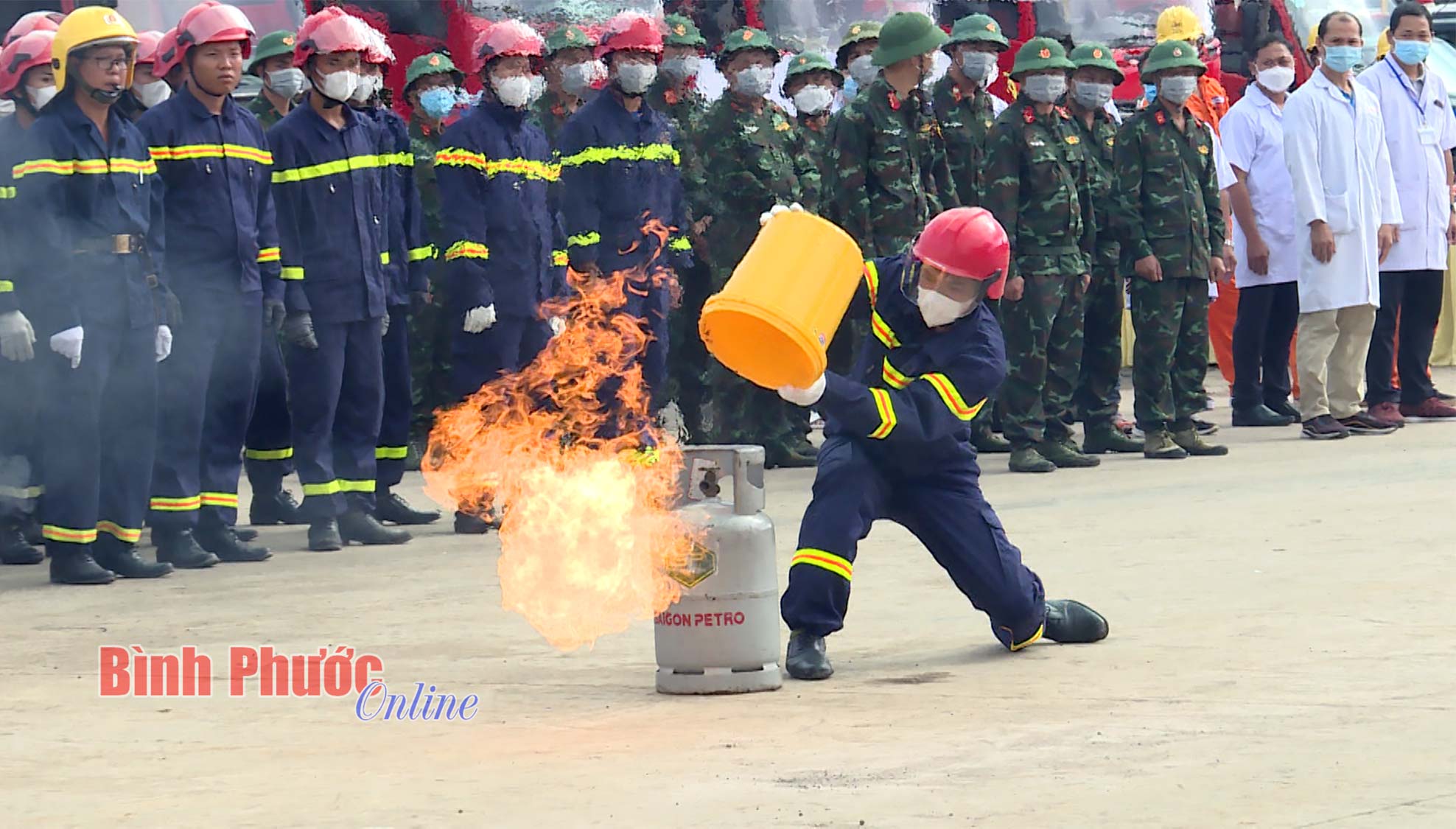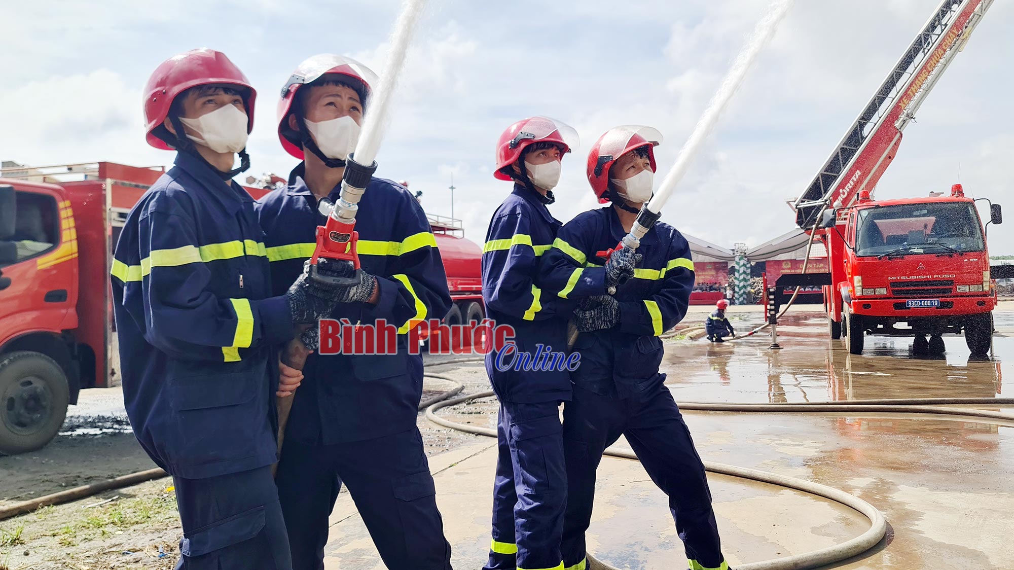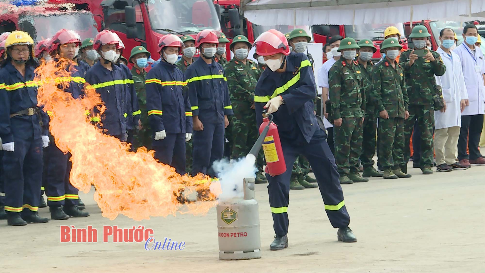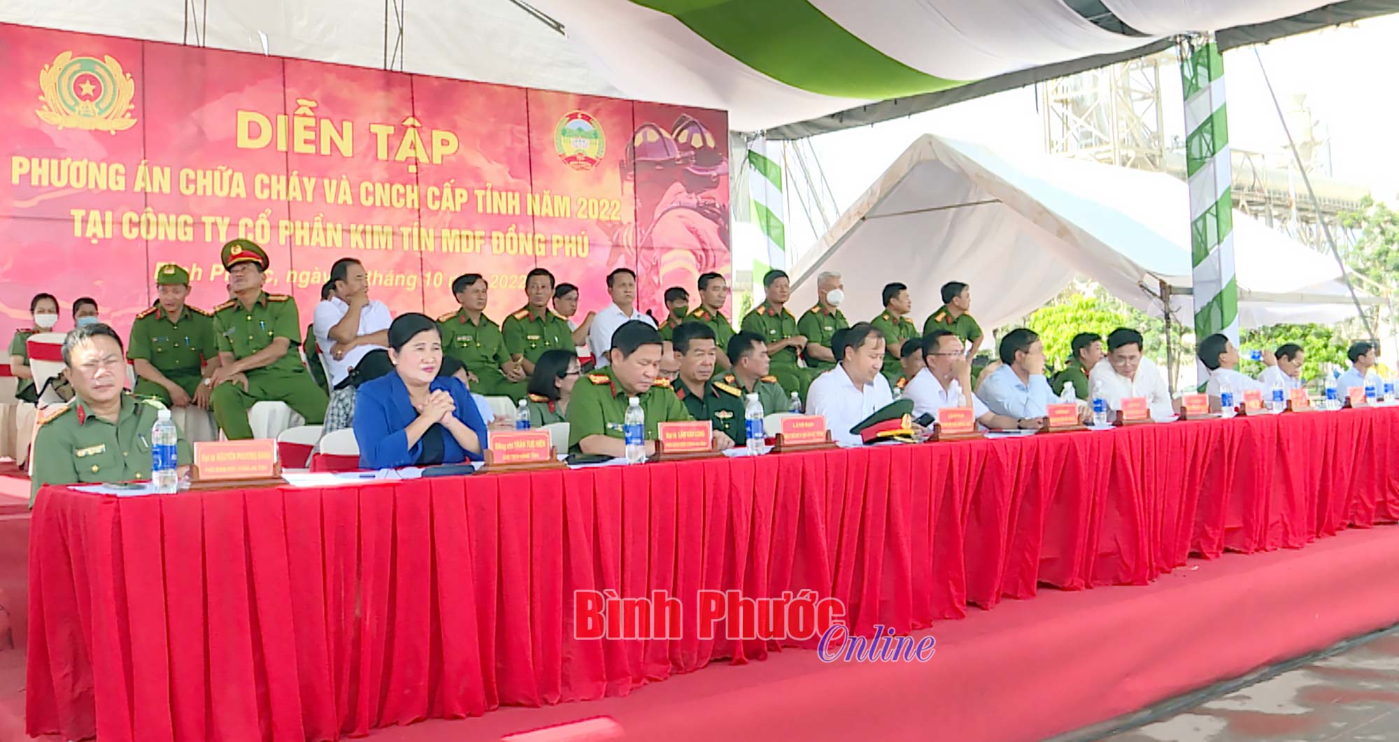 Đây là lần đầu tiên tỉnh Bình Phước tổ chức diễn tập phương án chữa cháy và CNCH đối với nhà máy lớn chứa hóa chất phục vụ sản xuất với quy mô lớn và tập trung đông người, có nhiều lực lượng, phương tiện tham gia.