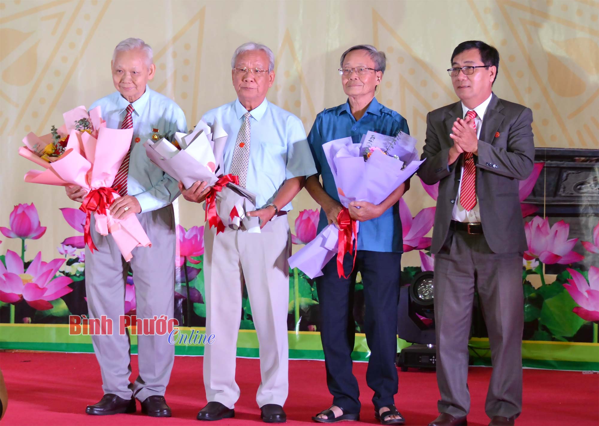 Đại diện Cộng đồng họ Bùi tặng hoa các cựu lão thành cách mạng họ Bùi cống hiến cho sự phát triển của tỉnh Bình Phước
