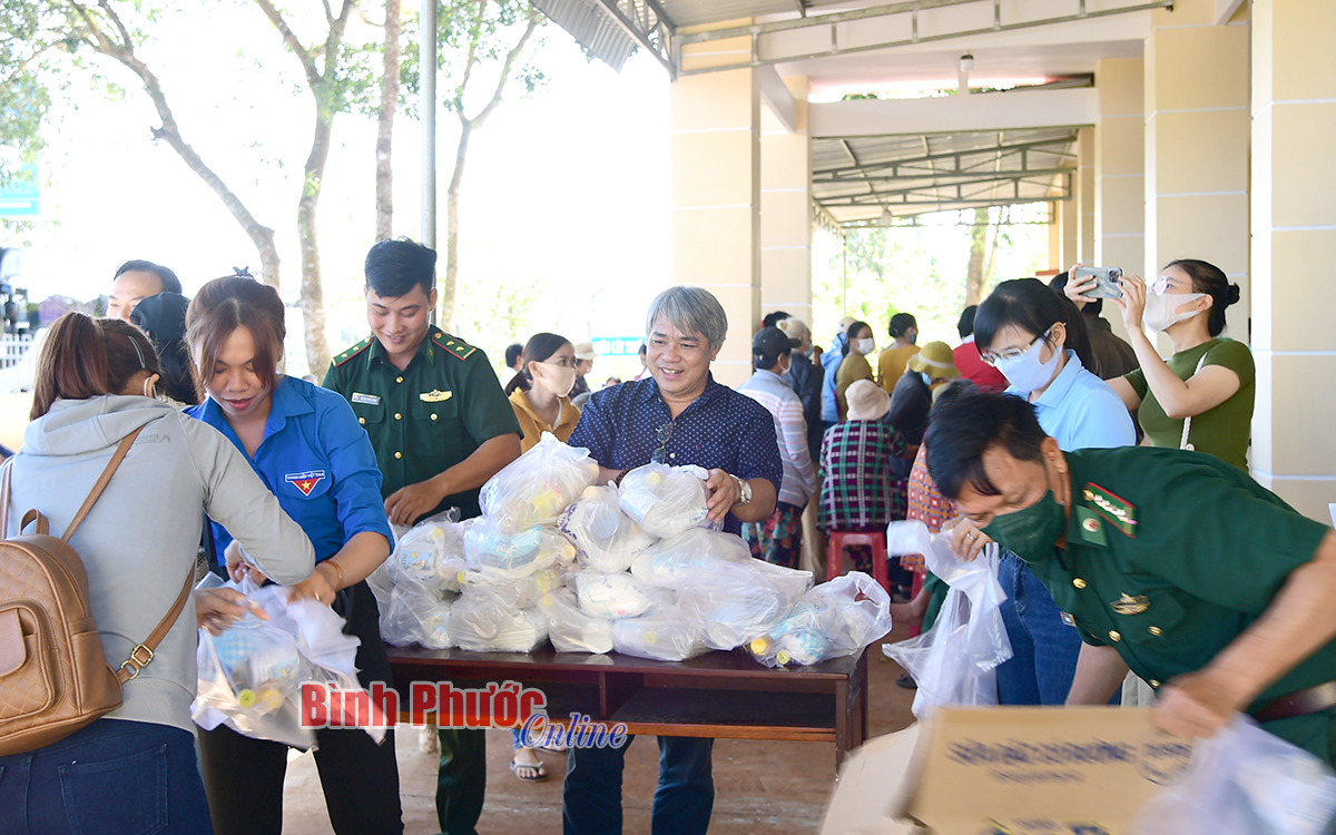 Dịp này, đoàn đã trao tặng 200 phần quà (trị giá mỗi phần 200 ngàn đồng), gồm dầu ăn, đường, sữa, nước tương… cho người dân. Tổng kinh phí đợt khám bệnh, cấp thuốc và tặng quà là 110 triệu đồng.