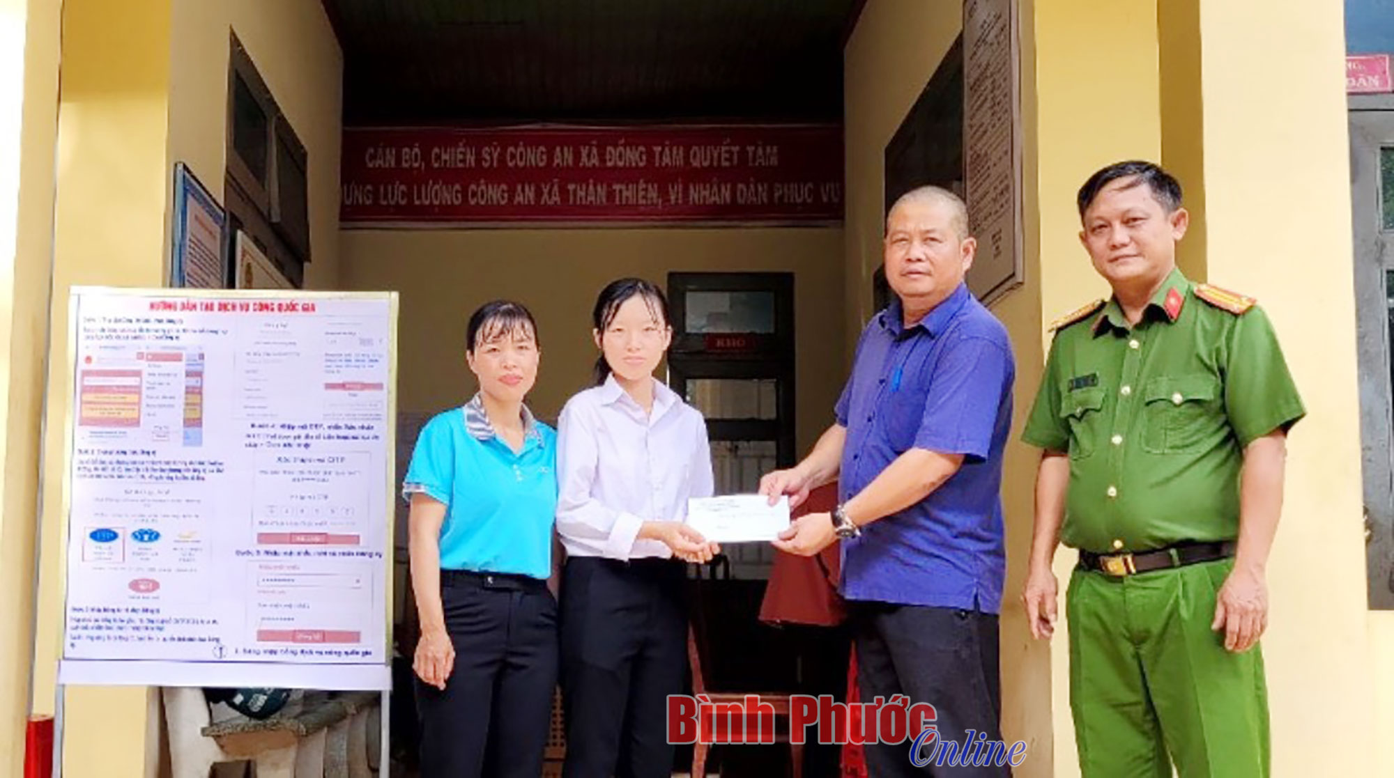 Ngày 10-11-2022, Công an huyện Đồng Phú phối hợp cùng chính quyền xã Đồng Tâm, huyện Đồng Phú đã tổ chức trao số tiền 12 triệu đồng do Quỹ nghĩa tình đồng đội Công an nhân dân trợ cấp hằng tháng trong năm 2022 cho em Phạm Thị Thúy Hà, SN 2005, học sinh lớp 12, Trường THPT Lê Quý Đôn, huyện Bù Đăng. Em Hà là con của liệt sĩ Phạm Đức Ninh, nguyên công an viên xã Phú Trung, huyện Phú Riềng đã anh dũng hy sinh trong khi làm nhiệm vụ.