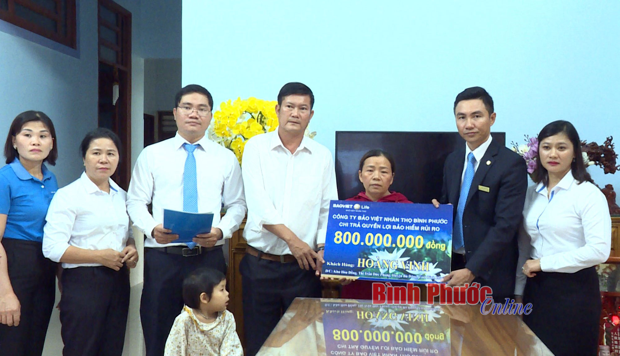 Tại buổi chi trả, đại diện Bảo Việt nhân thọ Bình Phước đã chia buồn, động viên gia đình, đồng thời trao 800 triệu đồng thuộc gói bảo hiểm An Phát trọn đời theo cam kết ban đầu. Tham gia bảo hiểm nhân thọ từ tháng 6-2019 với tổng mức đóng phí 46,8 triệu đồng, cuối tháng 8-2022, anh Hoàng Vinh không may qua đời do tai nạn lao động để lại vợ và 2 con còn nhỏ.