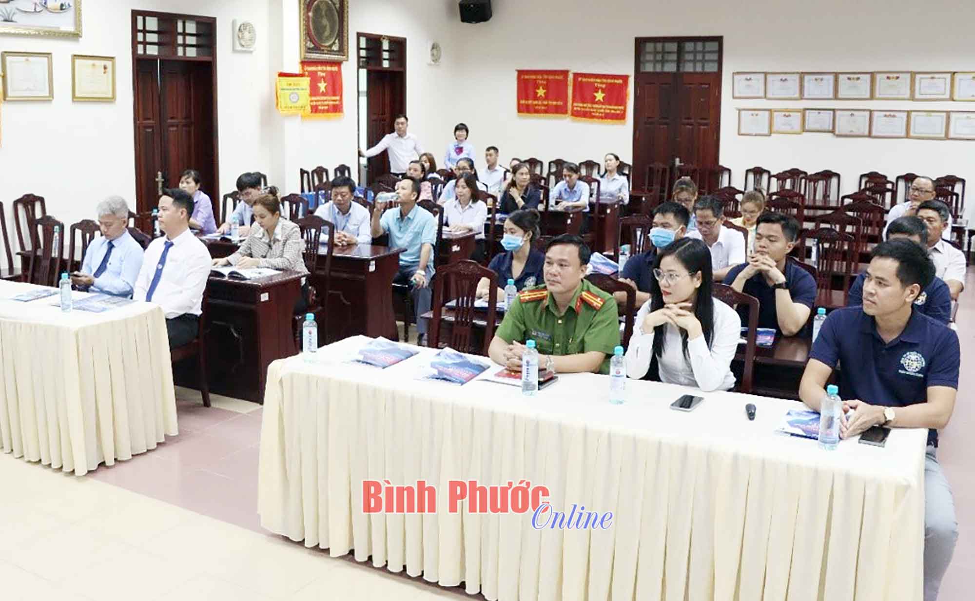 Đại diện Công ty Bảo hiểm Vietinbank Bình Dương, Ngân hàng Vietinbank chi nhánh Bình Phước, Công ty cổ phần môi trường Thảo Dương Xanh tham dự buổi chi trả bảo hiểm