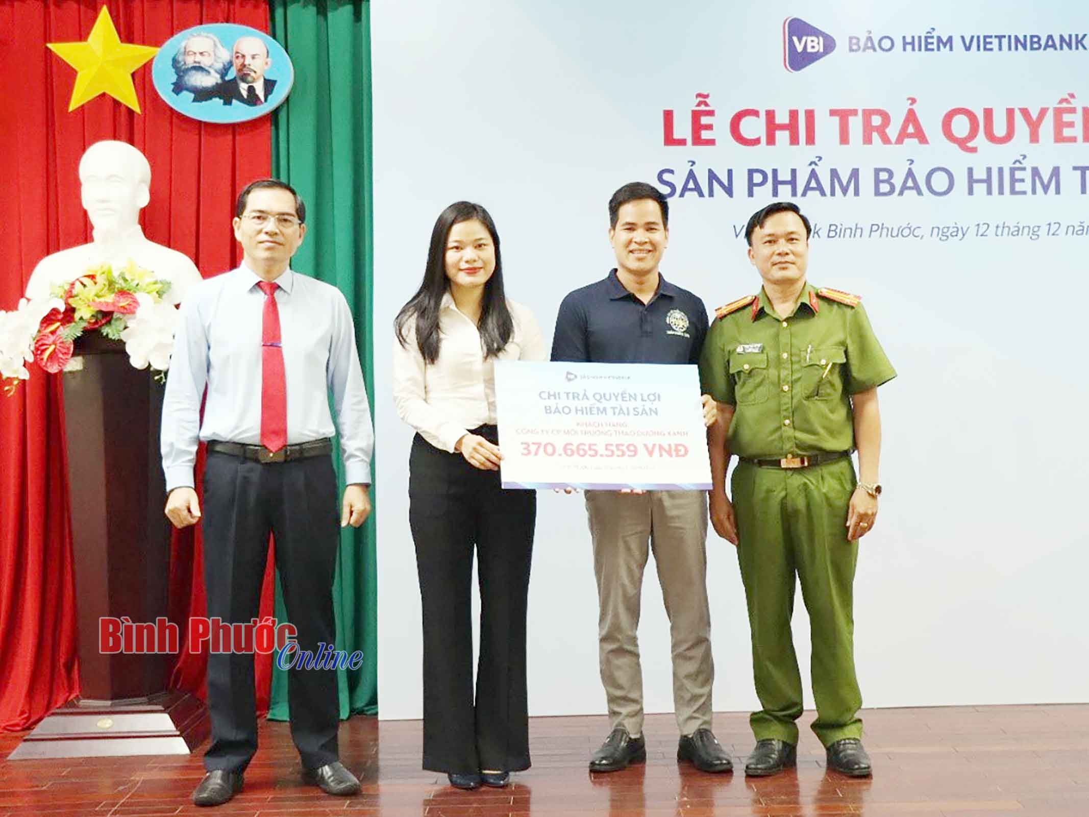 Ngày 30-6-2021, tại Công ty cổ phần môi trường Thảo Dương Xanh xảy ra cháy ở khu vực nhà kho. Sau khi nhận được thông báo về vụ việc, Bảo hiểm Vietinbank đã hướng dẫn khách hàng hoàn thiện hồ sơ chứng từ, đồng thời thông qua công tác giám định thiệt hại và kết luận của Cơ quan Cảnh sát điều tra huyện Hớn Quản, số tiền chi trả cho Công ty cổ phần môi trường Thảo Dương Xanh được xác định là 370.665.559 đồng.
