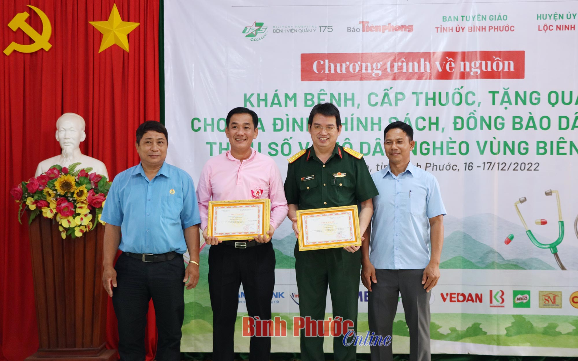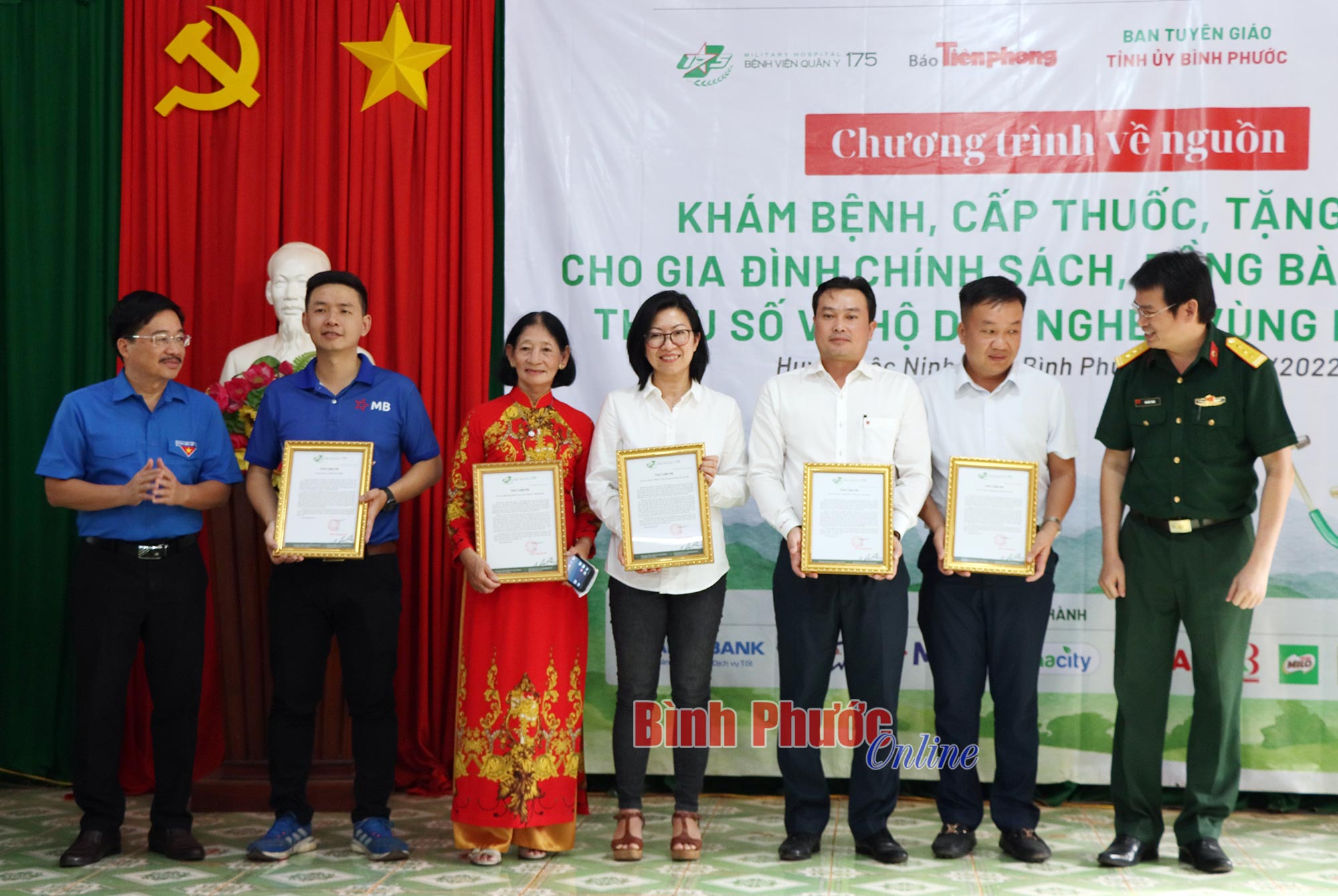 Lãnh đạo hai xã Lộc An, Lộc Hòa và Bệnh viện Quân y 175 trao thư cảm ơn chương trình và các đơn vị.
