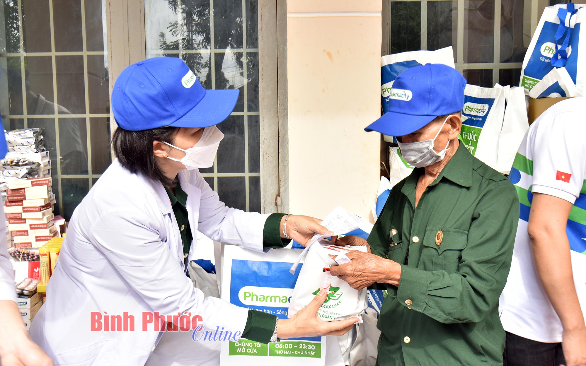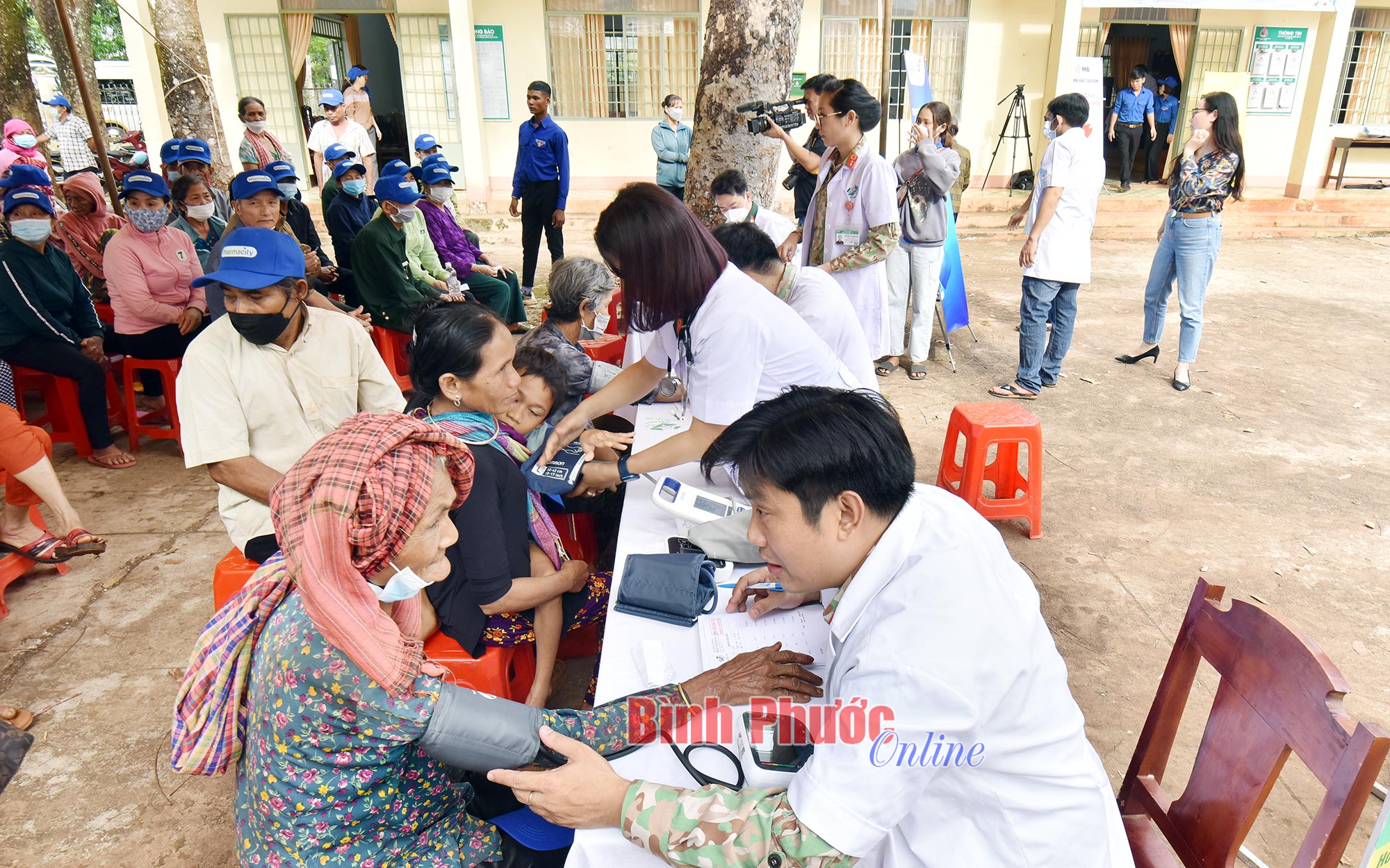 Các cán bộ, y, bác sĩ Bệnh viện Quân y 175 tận tình hướng dẫn, tư vấn sức khỏe, khám bệnh và cấp thuốc miễn phí cho người dân