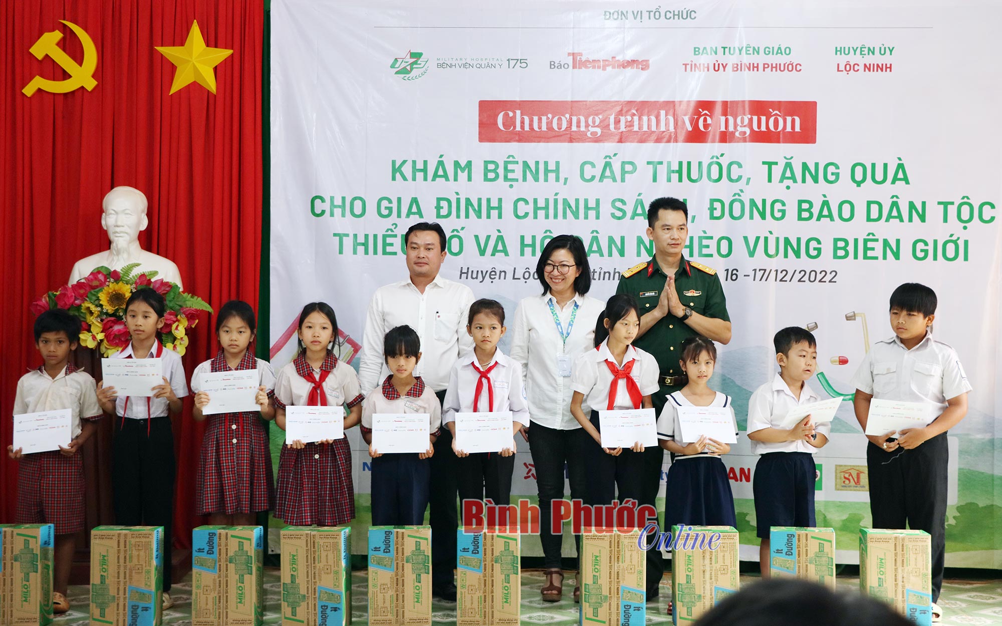 Trong khuôn khổ chương trình, đoàn đã trao tặng 300 phần quà, mỗi phần trị giá 300 ngàn đồng, cho gia đình chính sách, đồng bào dân tộc thiểu số, hộ nghèo; trao 20 suất học bổng, mỗi suất trị giá 1 triệu đồng, cho học sinh nghèo vượt khó học tốt của hai xã Lộc An và Lộc Hòa. Đồng hành với chương trình, Ban Tuyên giáo Tỉnh ủy Bình Phước đã vận động Công ty cổ phần chăn nuôi C.P Việt Nam 300 phần quà, trị giá 200 ngàn đồng/phần, trao tặng cho bà con.