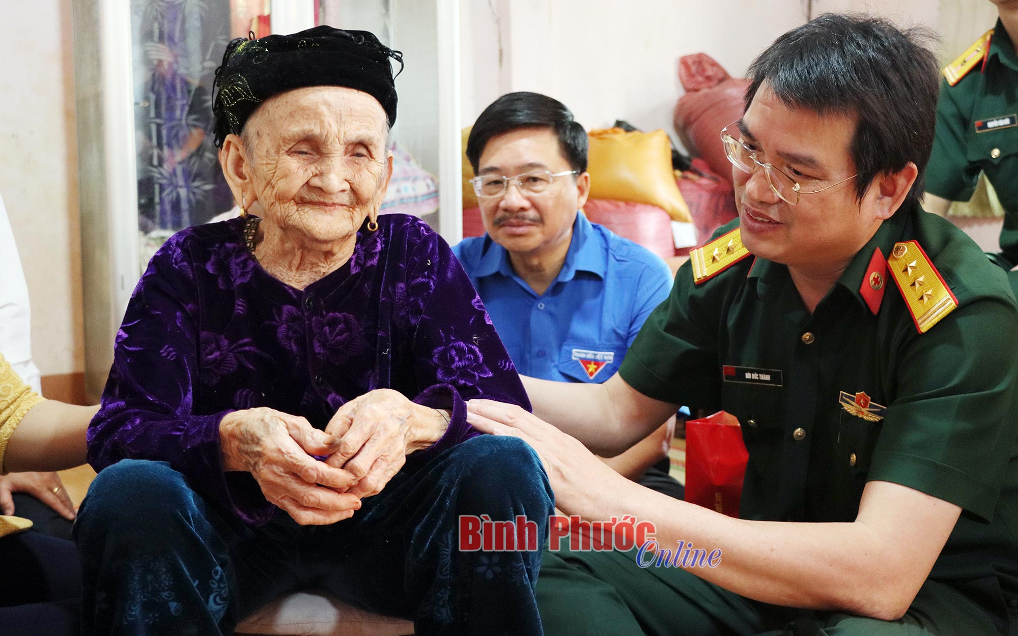 Đoàn ân cần thăm hỏi sức khỏe, động viên Mẹ Việt Nam anh hùng Kha Thị Yến ở ấp 8, xã Lộc An