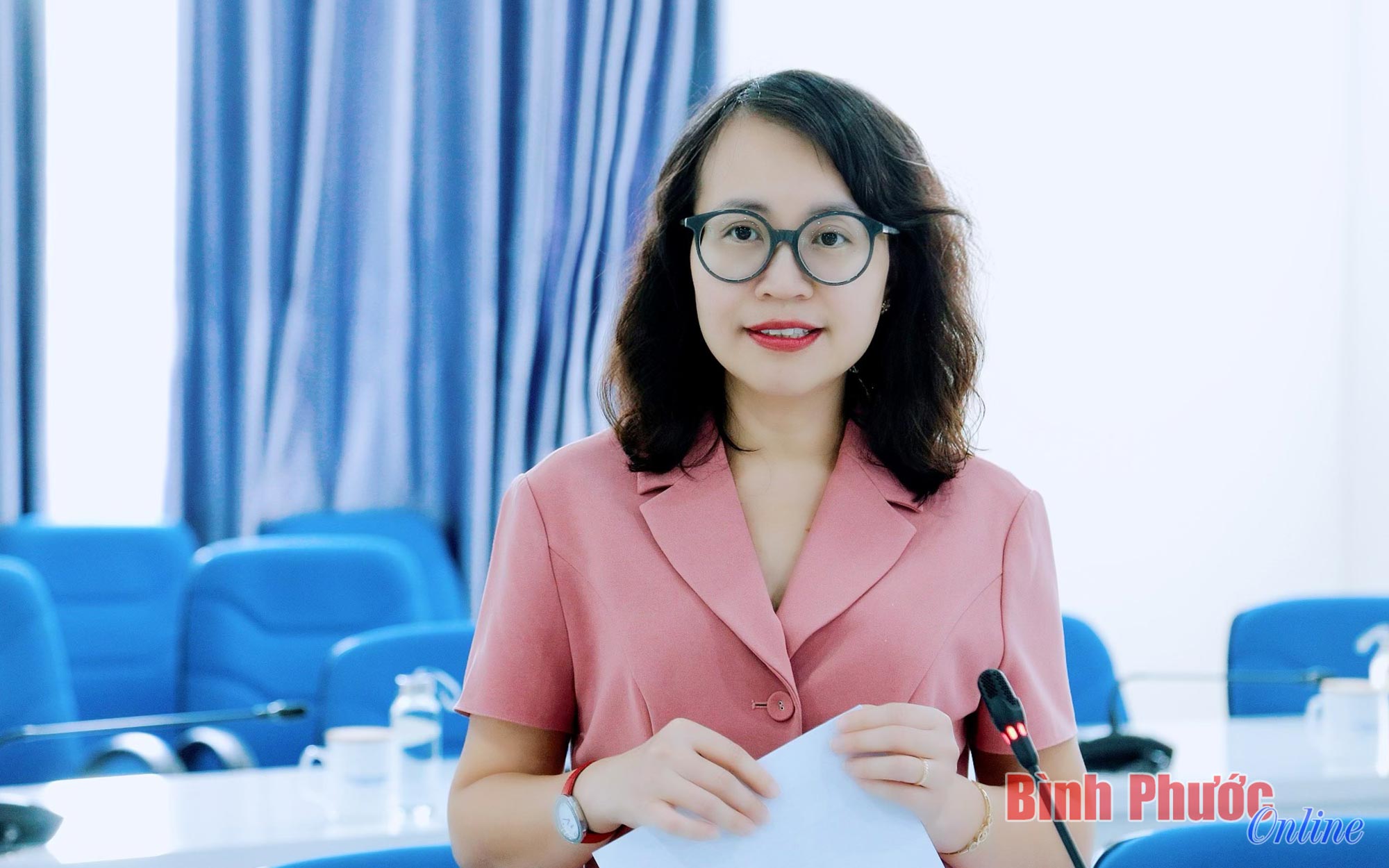 Tỉnh ủy viên, Giám đốc - Tổng Biên tập BPTV Nguyễn Thị Minh Nhâm phát biểu kết luận cuộc họp