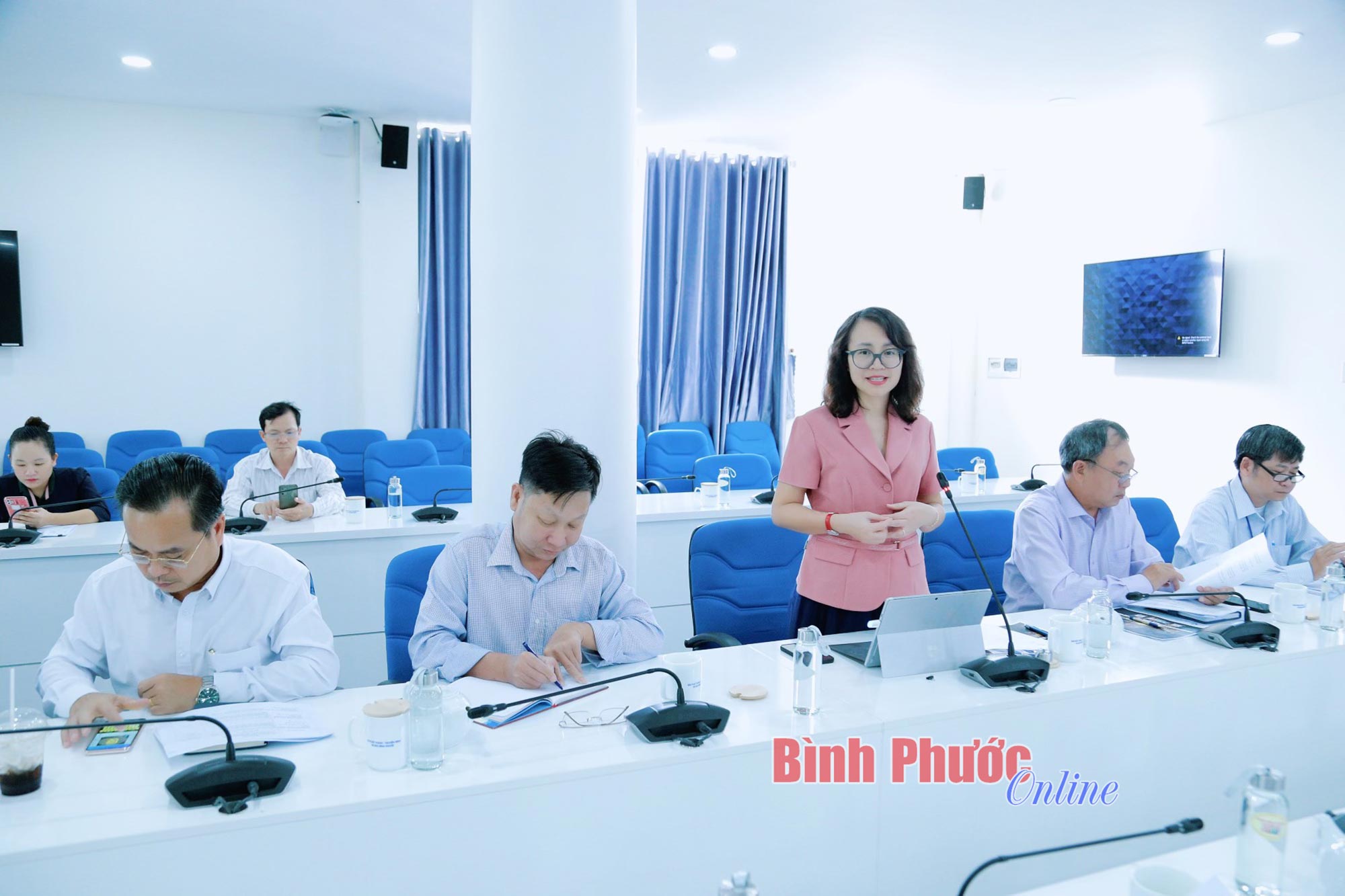 Tỉnh ủy viên, Giám đốc - Tổng Biên tập BPTV Nguyễn Thị Minh Nhâm chủ trì cuộc họp