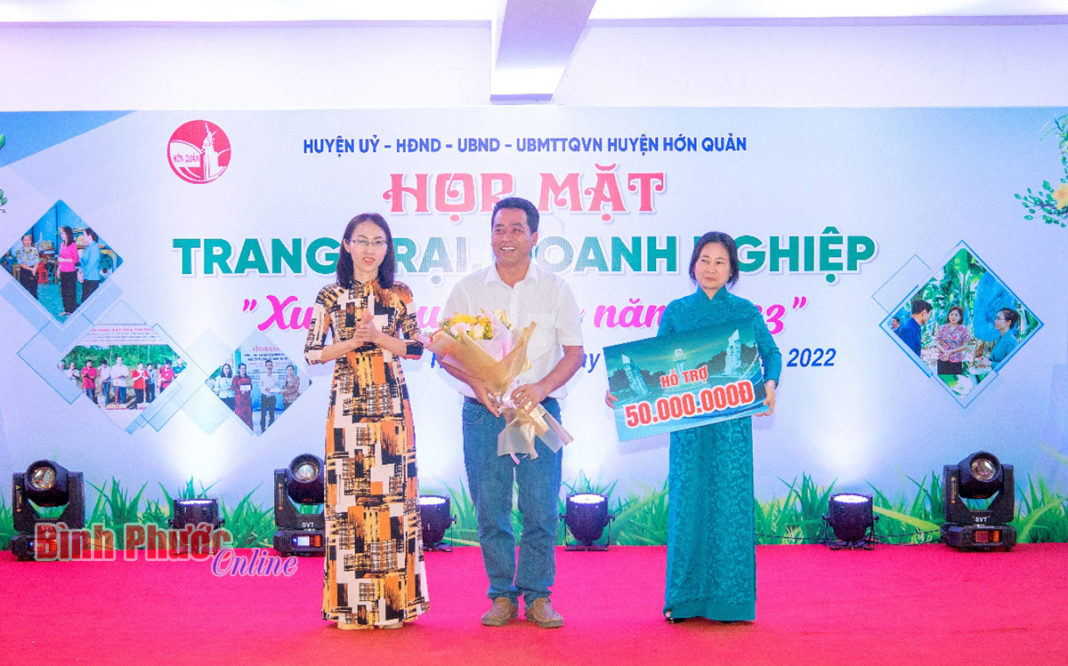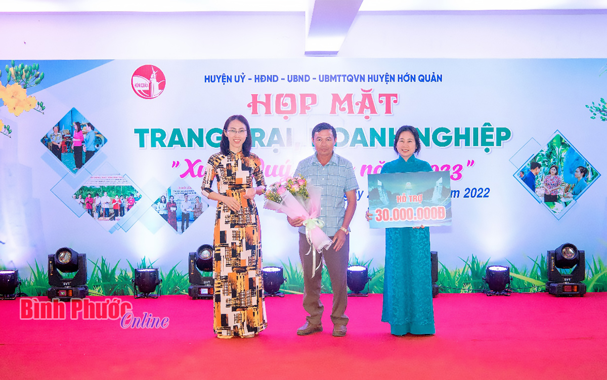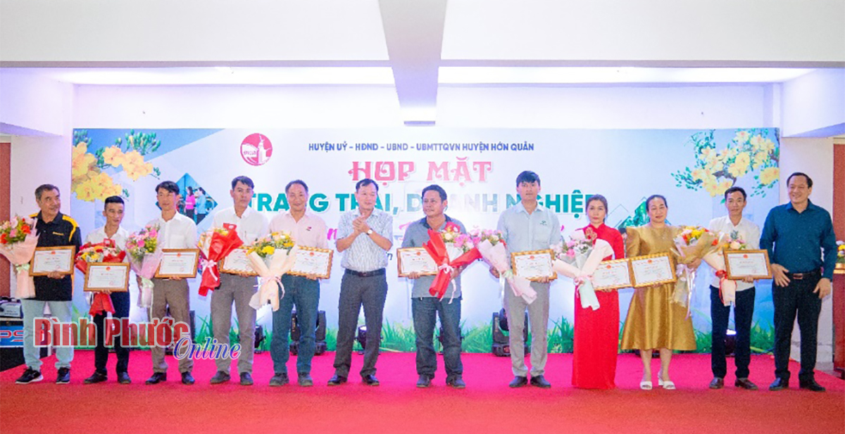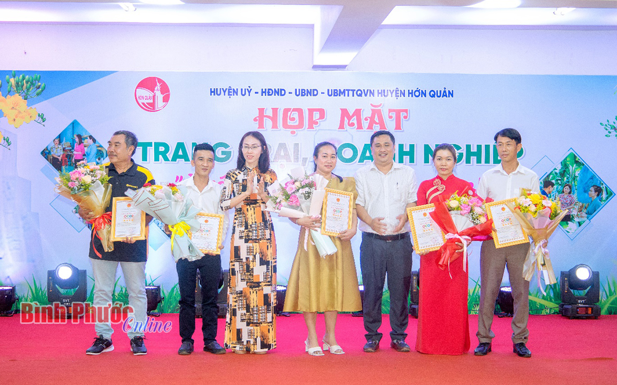 Dịp này, UBND huyện đã trao giấy chứng nhận sản phẩm OCOP của UBND tỉnh cho 9 sản phẩm tiêu biểu của huyện. Ngoài ra, Huyện ủy, HĐND, UBND, UBMTTQVN huyện Hớn Quản cũng tuyên dương các gia đình, doanh nghiệp và trang trại có nhiều đóng góp cho công tác an sinh xã hội của huyện trong năm 2022.