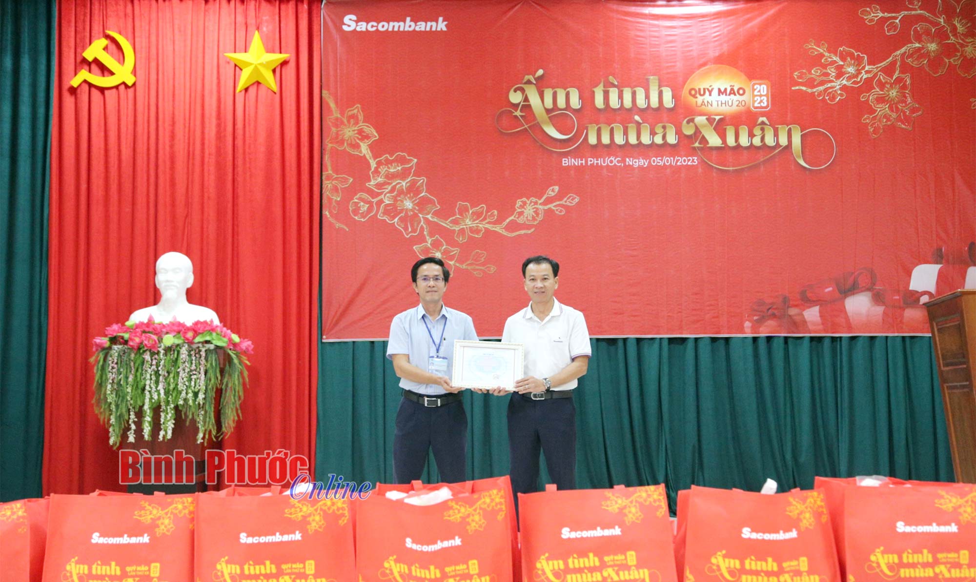 Riêng tại Bình Phước, Sacombank Chi nhánh Bình Phước tổ chức trao tặng quà tết cho 410 gia đình diện chính sách, neo đơn, trẻ em mồ côi, khuyết tật, nạn nhân chất độc da cam/dioxin, bệnh nhân tại thành phố Đồng Xoài, thị xã Bình Long, huyện Bù Gia Mập,… với tổng kinh phí hơn 200 triệu đồng.