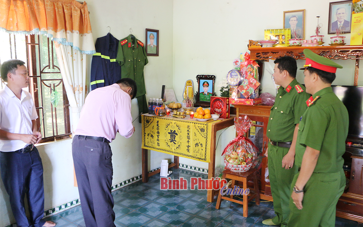 Dịp này, đại diện Hội phụ nữ cơ sở khối quản lý hành chính, Chi đoàn Phòng Tham mưu Công an tỉnh Bình Phước và đại diện các gia đình có cán bộ, chiến sĩ bị thương cũng đã đến thắp hương cho 2 đồng chí hy sinh, trao tặng quà nhằm động viên, chia sẻ với gia đình.