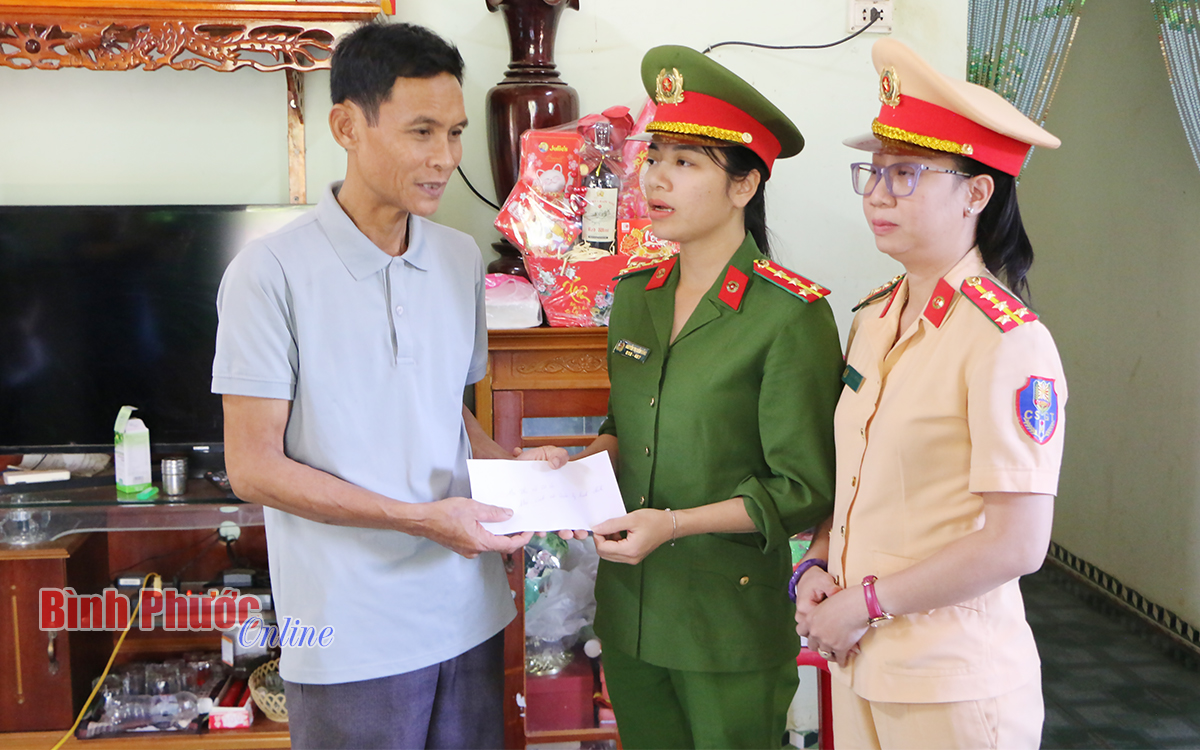 Lãnh đạo Phòng Cảnh sát PCCC và CNCH, Hội phụ nữ cơ sở khối quản lý hành chính, Chi đoàn Phòng Tham mưu Công an tỉnh Bình Phước thăm hỏi, động viên thân nhân 2 gia đình và tặng quà tri ân