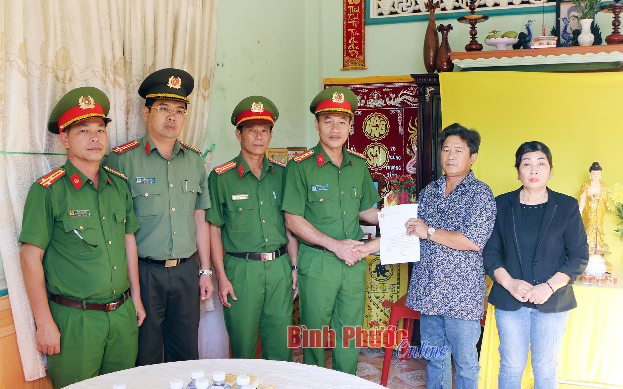 Tổng số tiền trao đợt này 130 triệu đồng được trích từ Quỹ “Nghĩa tình đồng đội Công an nhân dân” nhằm hỗ trợ thân nhân gia đình các cán bộ, chiến sĩ hy sinh, bị thương trên đường đi làm nhiệm vụ.