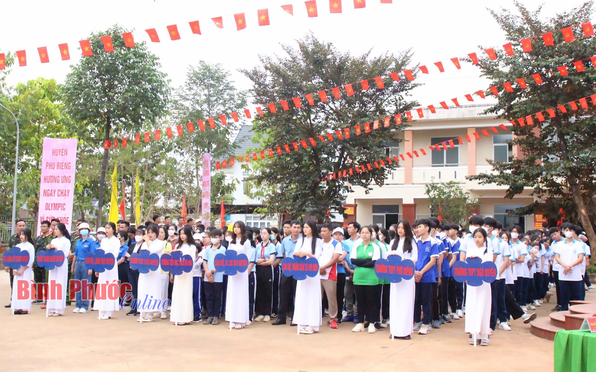 Cán bộ, công chức, viên chức, người lao động, lực lượng vũ trang và nhân dân, học sinh huyện Phú Riềng chạy hưởng ứng Ngày chạy Olympic vì sức khỏe toàn dân năm 2023.