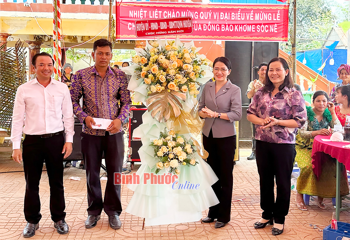 Dịp này, UBND huyện Bù Đốp đã trao tặng 85 hộ đồng bào Khmer tại ấp Sóc Nê, mỗi hộ 300 ngàn đồng, chúc đồng bào đón tết vui tươi, đầm ấm.