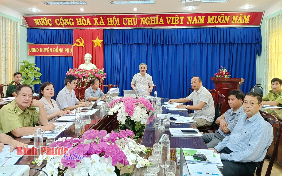 Lãnh đạo Sở Nông nghiệp và Phát triển nông thôn, huyện Đồng Phú và đơn vị tư vấn trao đổi, thống nhất một số nhiệm vụ chuẩn bị cho lễ trồng cây