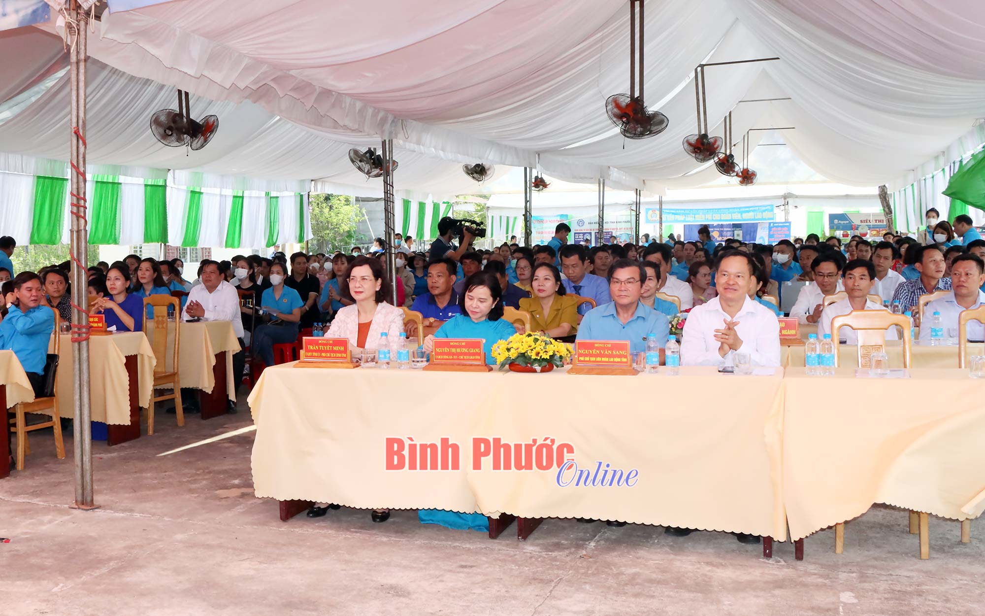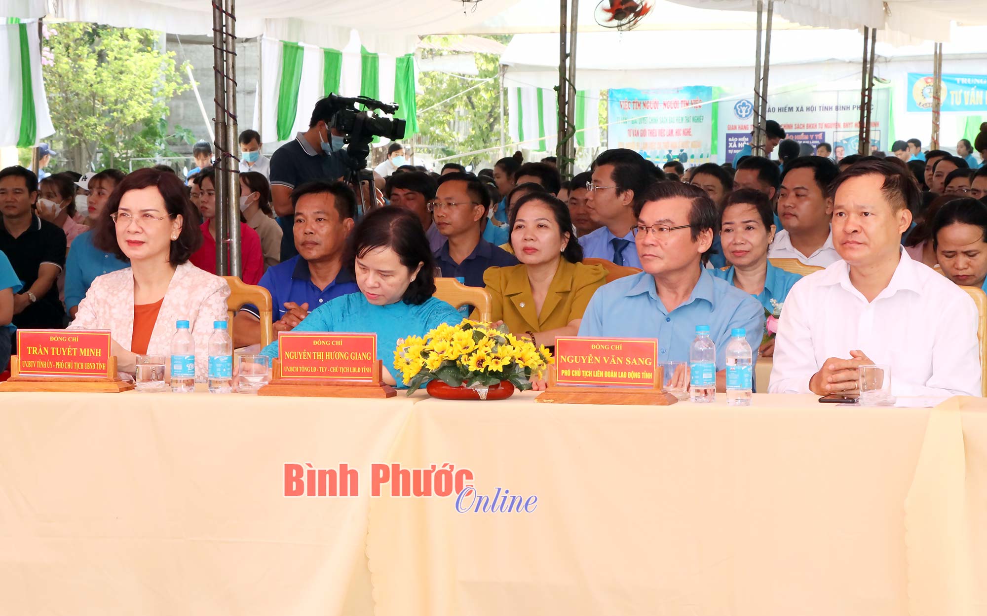 Ủy viên Ban Thường vụ Tỉnh ủy, Phó Chủ tịch UBND tỉnh Trần Tuyết Minh; đại diện lãnh đạo các ban, sở, ngành, Liên đoàn Lao động tỉnh và hơn 400 công nhân, người lao động dự lễ phát động.