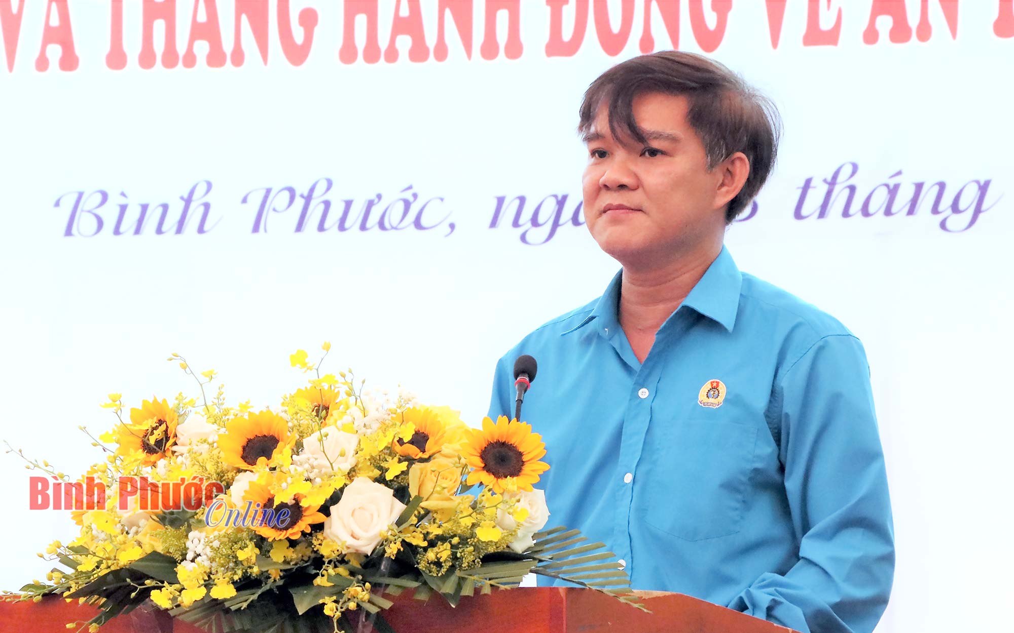 Ông Nguyễn Trung Dũng, Phó Chủ tịch LĐLĐ tỉnh, Trưởng ban Tổ chức lễ phát động phát biểu phát động