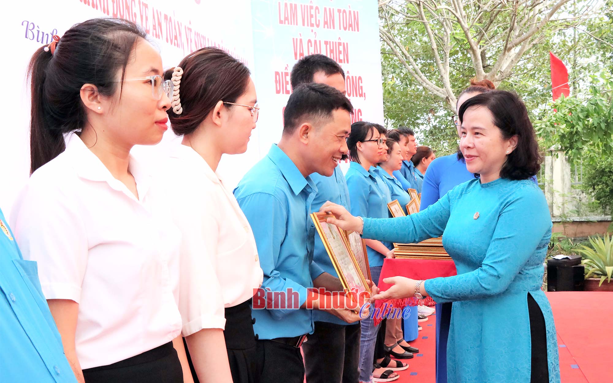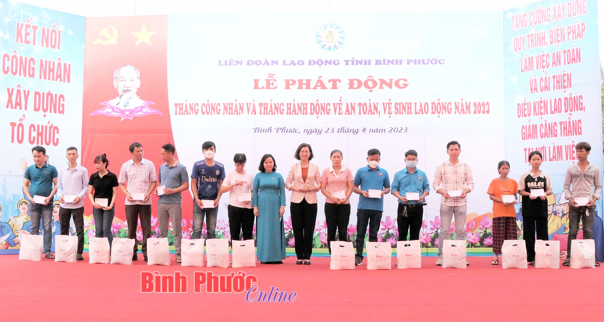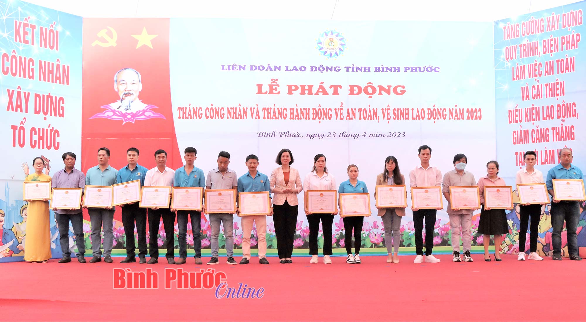 Tại lễ phát động, Ban tổ chức đã trao tặng bằng khen của Chủ tịch UBND tỉnh cho các cá nhân có thành tích xuất sắc trong phong trào “Lao động giỏi, lao động sáng tạo”; bằng khen của Liên đoàn Lao động tỉnh cho các tập thể, cá nhân có thành tích xuất sắc trong học tập và làm theo tư tưởng, đạo đức, phong cách Hồ Chí Minh trong công nhân, viên chức, lao động giai đoạn 2021-2023; phong trào “Xanh - sạch - đẹp, bảo đảm an toàn vệ sinh lao động”; trao giải cuộc thi duyên dáng áo dài và trao quà cho công nhân, lao động bị tai nạn lao động, bệnh nghề nghiệp.