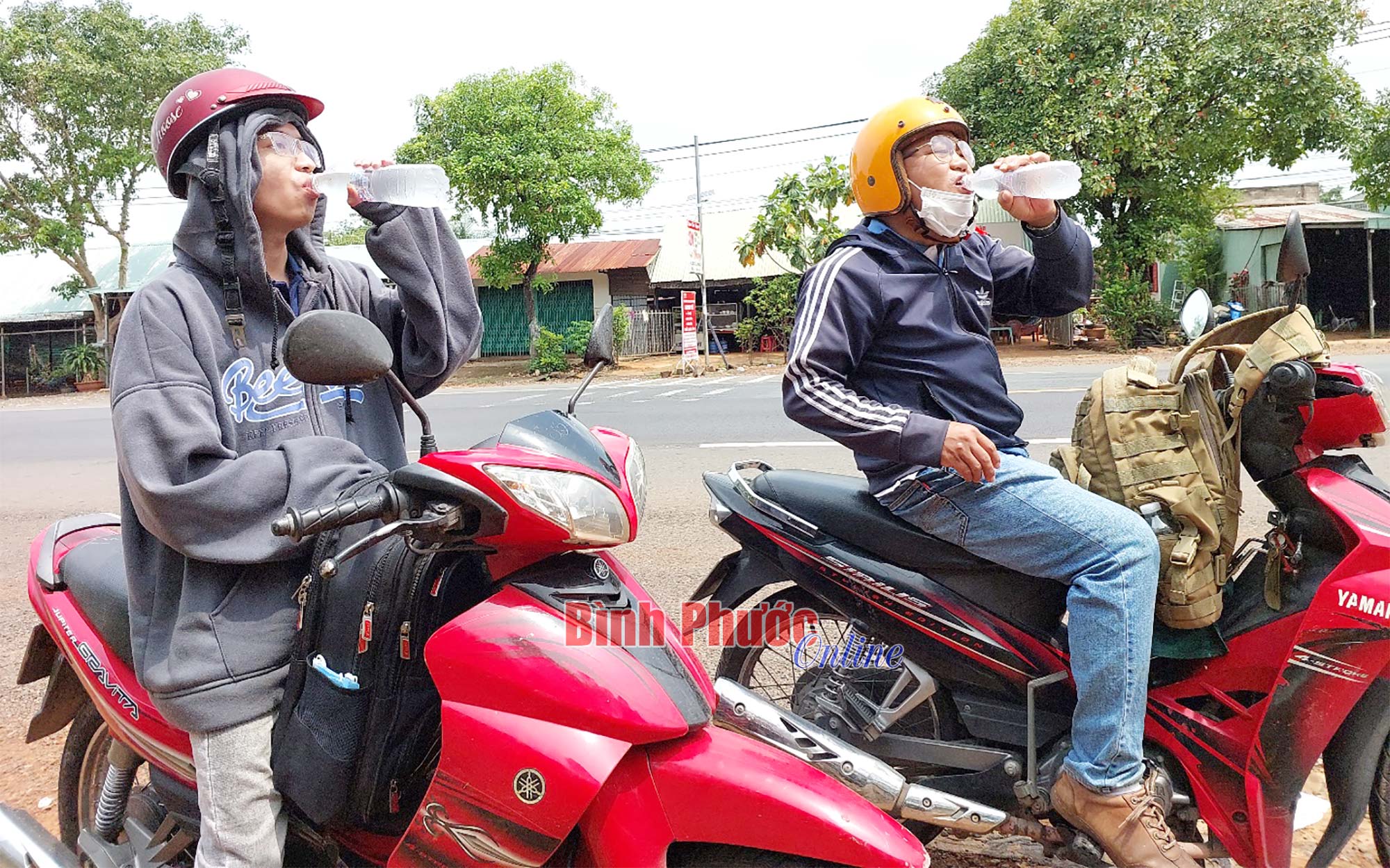 Những chai nước và khăn lạnh làm “mát lòng” người đi đường qua địa bàn tỉnh Bình Phước