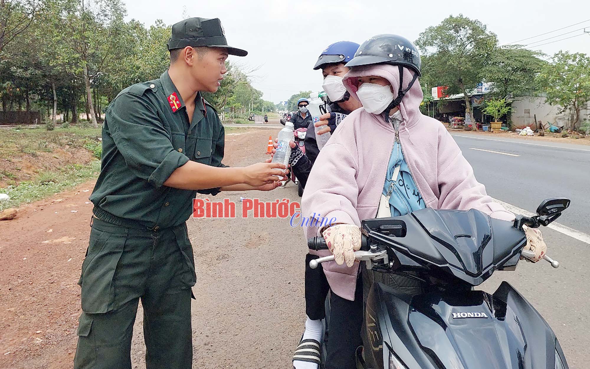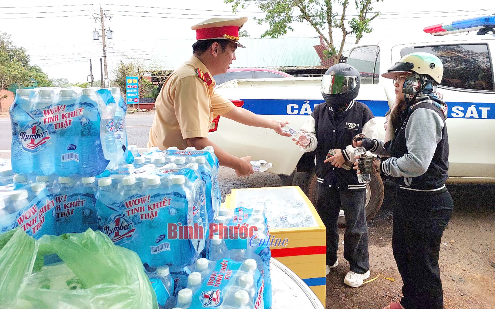 Vượt quãng đường khá dài từ tỉnh Bình Dương, Đồng Nai và TP. Hồ Chí Minh qua địa bàn tỉnh Bình Phước về quê tại các tỉnh Đắk Nông, Đắk Lak, Gia Lai, Kon Tum, hầu hết người dân di chuyển bằng môtô, xe máy đều rất mệt mỏi, khát nước. Dưới nắng nóng đỉnh điểm của mùa khô Nam Bộ, những chai nước mát và khăn lạnh được lực lượng CSGT Công an tỉnh Bình Phước tiếp sức, khiến người dân ai cũng vui vẻ, hạnh phúc.