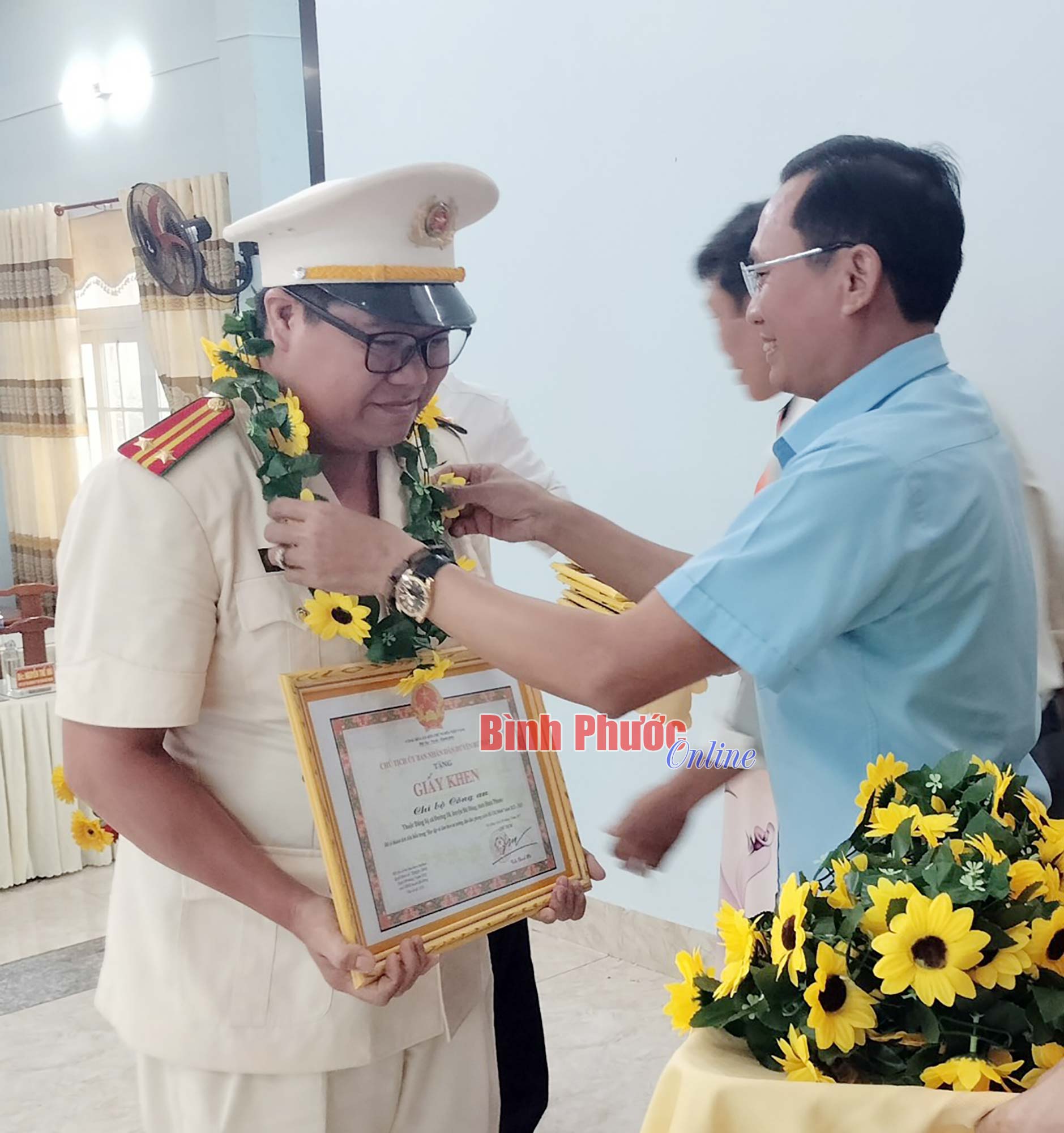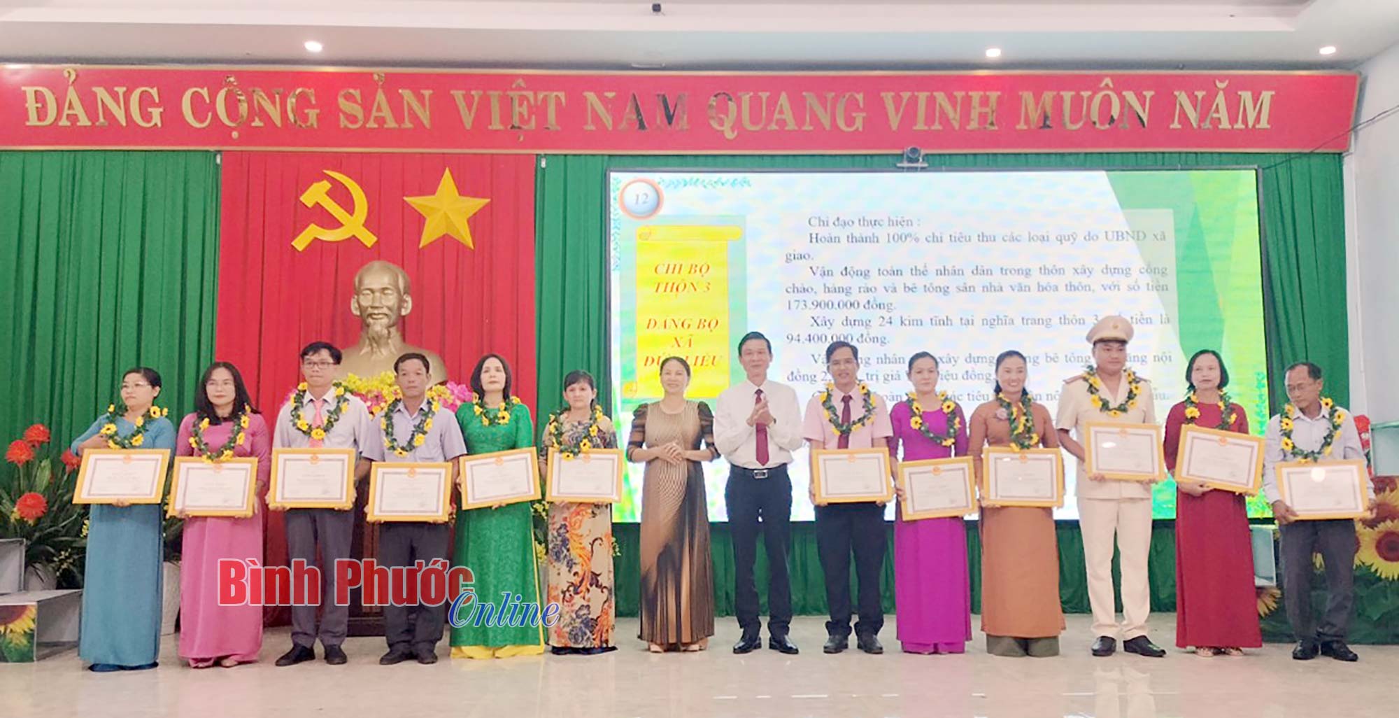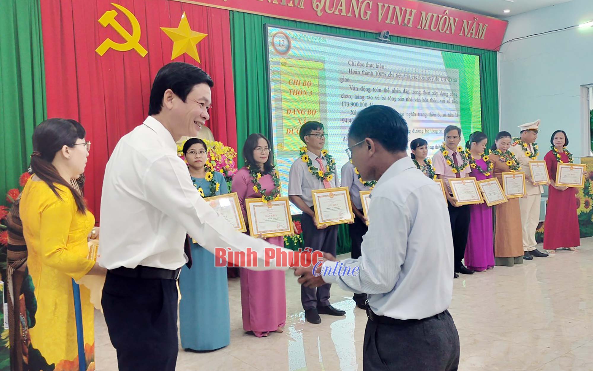 Tỉnh ủy viên, Bí thư Huyện ủy Bù Đăng Vũ Lương trao bằng khen của UBND tỉnh Bình Phước cho 1 tập thể, 1 cá nhân được tuyên dương cấp tỉnh