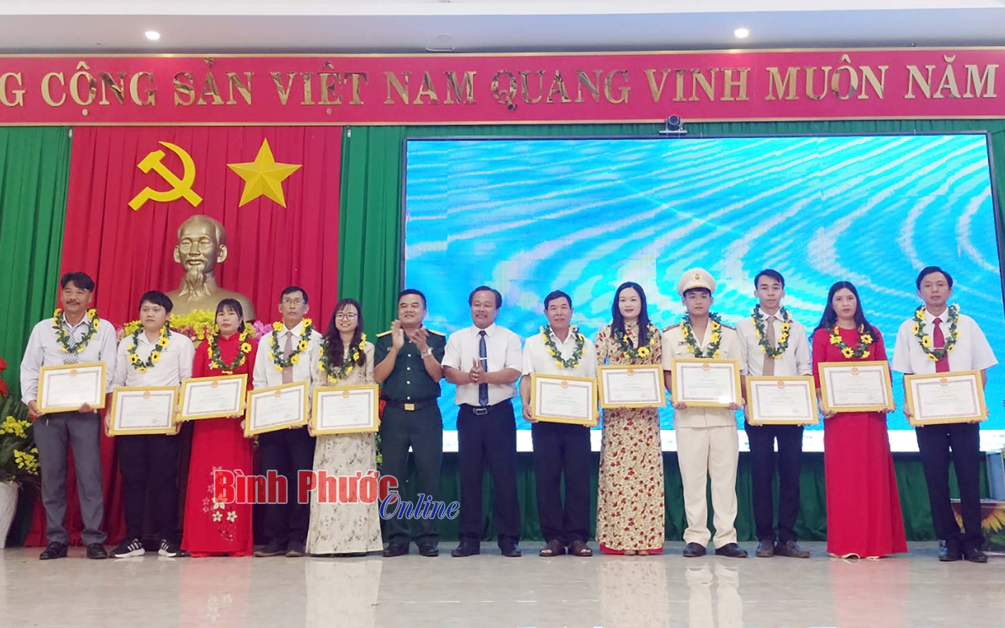 Lãnh đạo huyện Bù Đăng trao giấy khen của Chủ tịch UBND huyện cho các tập thể, cá nhân được tuyên dương cấp huyện
