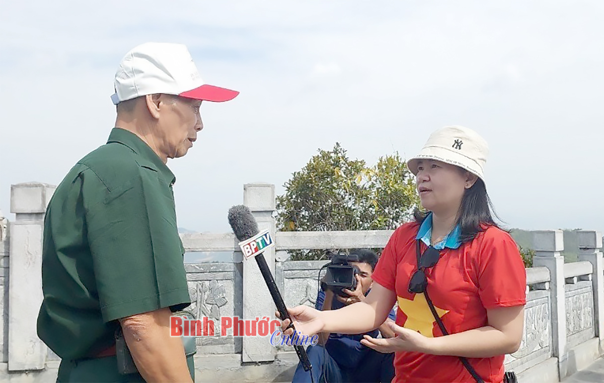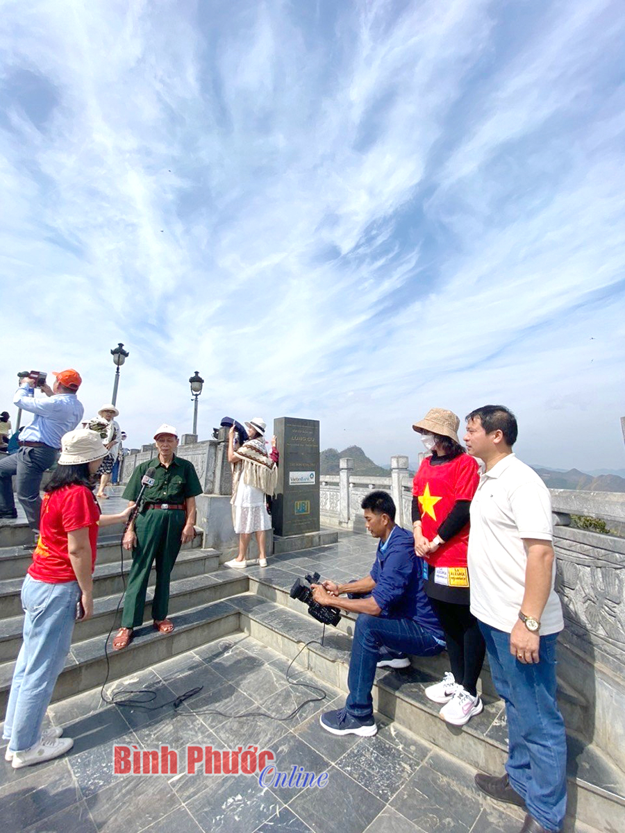 Nhà báo Lệ Quyên, Phó trưởng Phòng Thời sự và nhà báo Thổ Thanh, Phòng Chuyên mục - Chuyên đề BPTV cùng ê-kíp tác nghiệp tại Cột cờ Lũng Cú, tỉnh Hà Giang