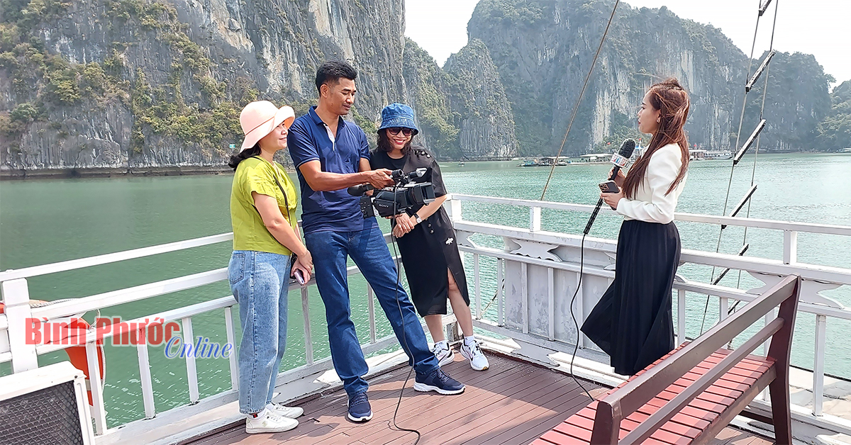 Ê-kíp thực hiện chương trình Cà phê sáng trên boong tàu tại vịnh Hạ Long, tỉnh Quảng Ninh