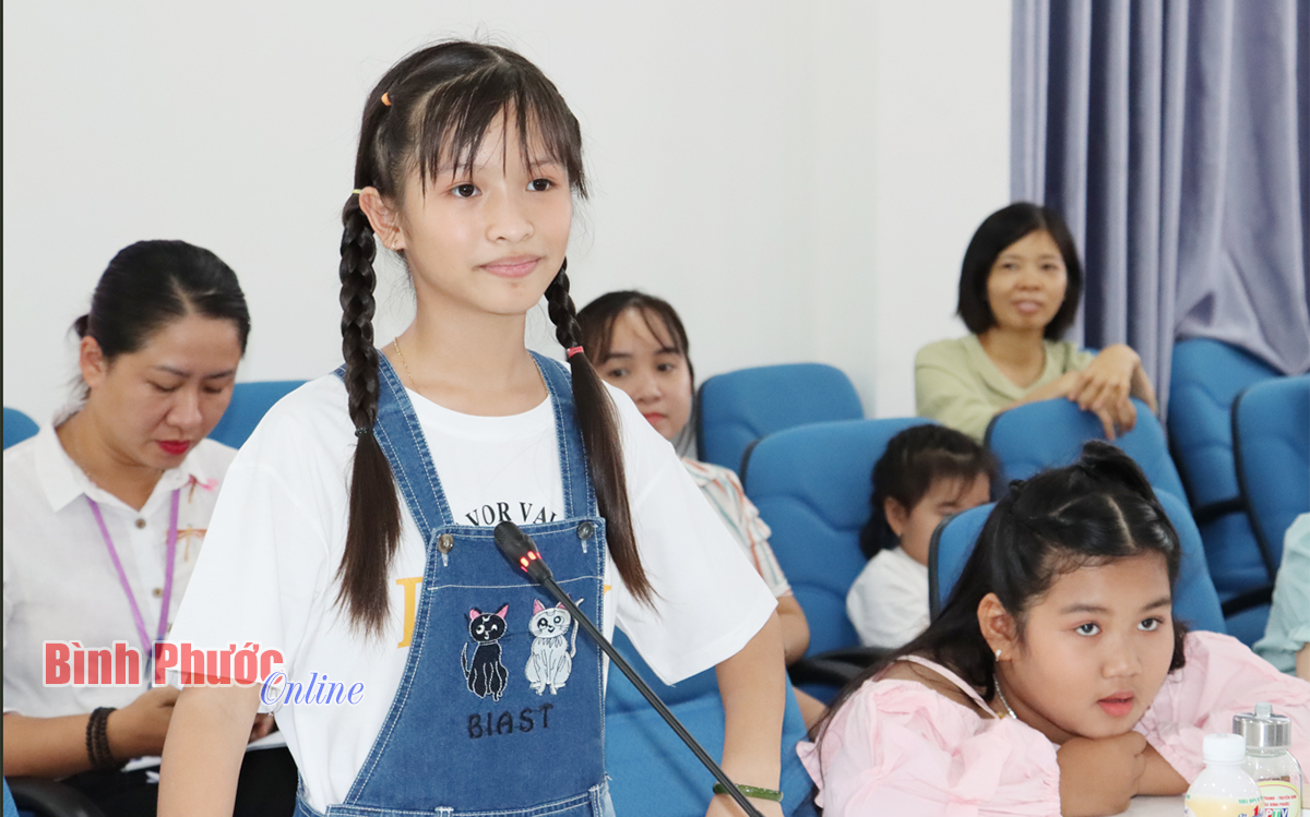 Cũng được tham gia chương trình tham quan, trải nghiệm thực tế một ngày làm nhà báo nhí, em Võ Phan Minh Thư ở huyện Đồng Phú được trải nghiệm với vai trò phát thanh viên của chương trình Radio tuổi thơ qua câu chuyện cổ tích Tấm Cám. Minh Thư cho biết: Khi biết lịch trình của chuyến đi sẽ được tham quan và trải nghiệm thực tế tại BPTV, em đã rất hồi hộp. Sau 1 ngày với nhiều hoạt động tại BPTV, em đã được trò chuyện với cô, chú phát thanh viên, tham quan các phòng thu và tập làm MC. Qua đây, em hiểu rõ để 1 chương trình được phát trên sóng phát thanh, truyền hình, các cô chú biên tập viên, phát thanh viên, kỹ thuật viên đã phải vất vả xử lý thế nào.
