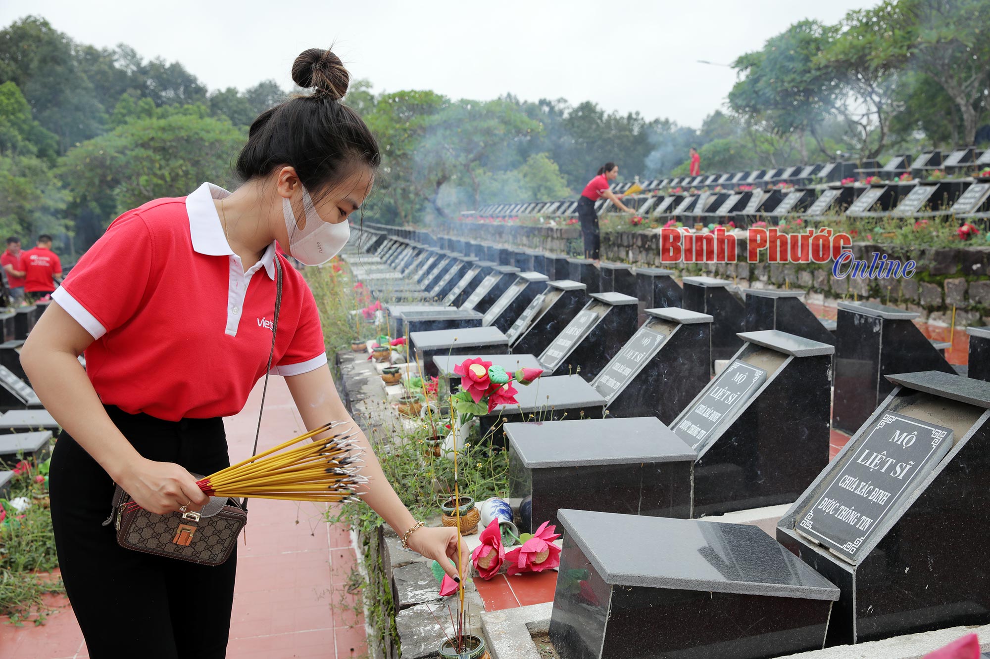 Trong không khí trang nghiêm, đông đảo cán bộ, người lao động Viettel Bình Phước đã thắp hương tri ân và chăm sóc phần mộ các liệt sĩ ở Nghĩa trang liệt sĩ tỉnh…