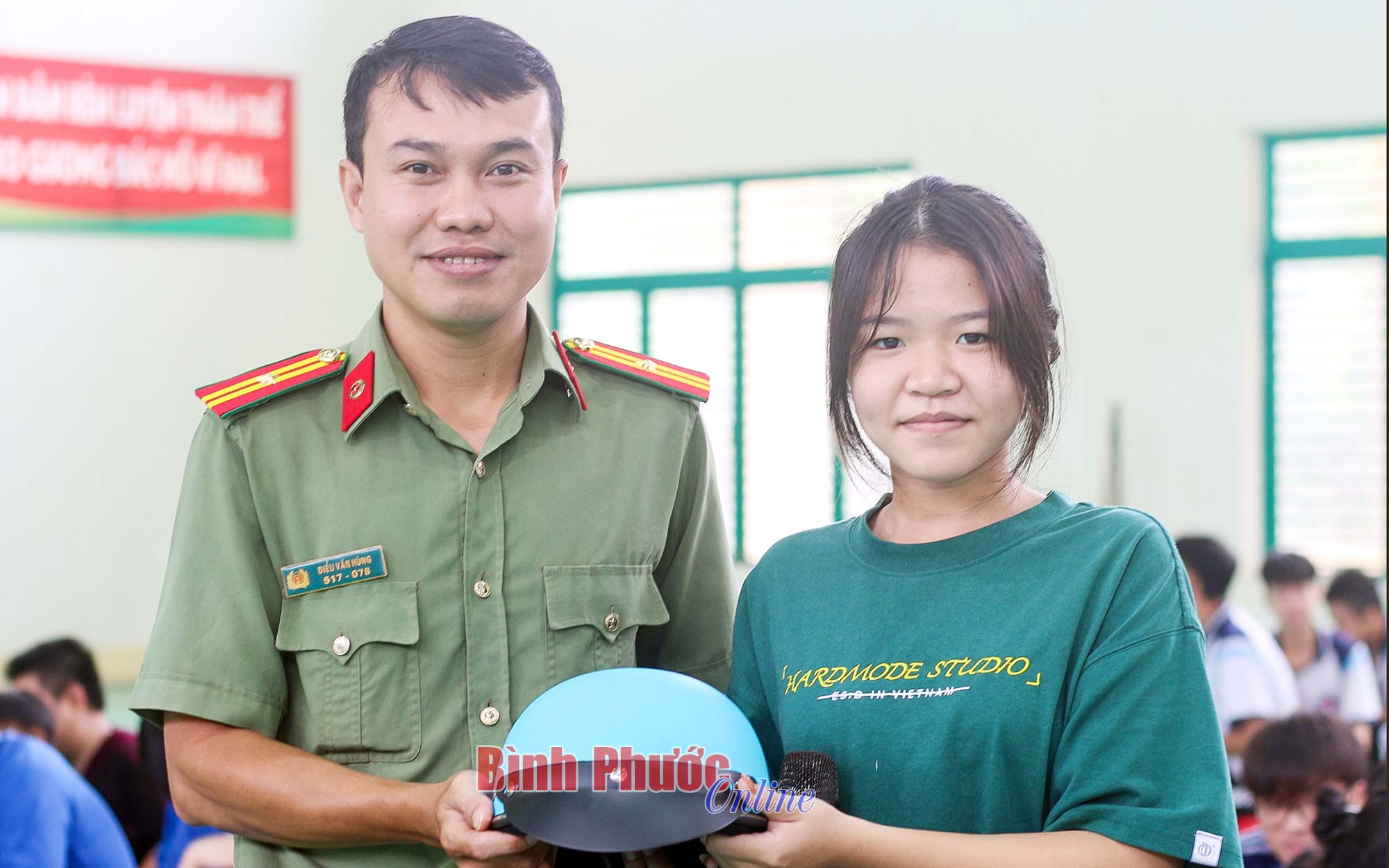 Tặng mũ bảo hiểm cho thanh thiếu niên phường Tiến Thành