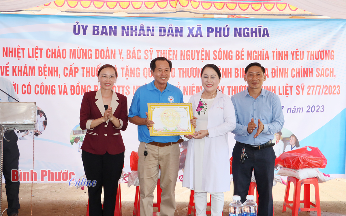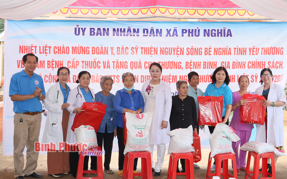 Tại trụ sở UBND xã Phú Nghĩa, đoàn đã tổ chức khám sàng lọc, tư vấn chữa bệnh, phát thuốc miễn phí cho 200 người dân thuộc gia đình chính sách, người có công, đồng bào dân tộc thiểu số và gia đình hoàn cảnh khó khăn. Nhằm chia sẻ khó khăn với người dân vùng sâu, vùng xa, đoàn còn trao tặng mỗi người một phần quà trị giá 300 ngàn đồng, gồm các nhu yếu phẩm sử dụng trong sinh hoạt hằng ngày.