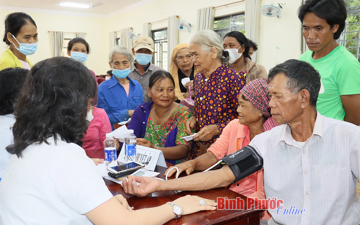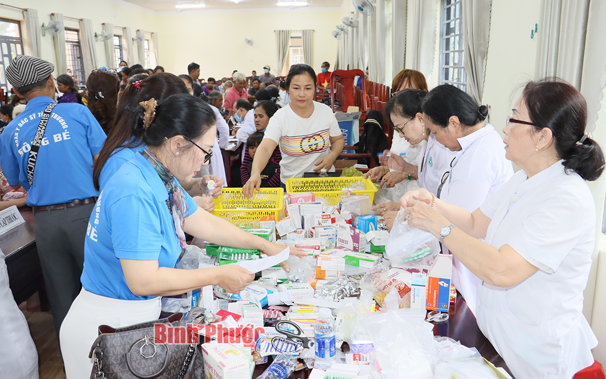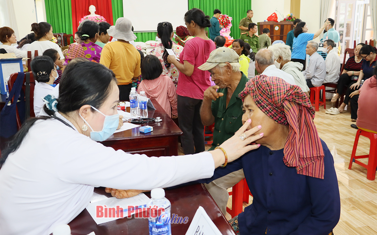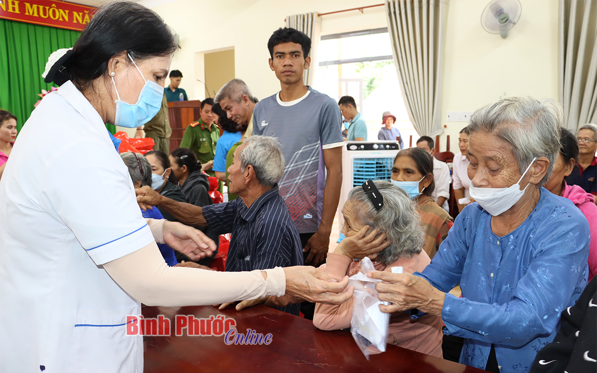 Ngoài được khám bệnh, tư vấn sức khỏe và phát thuốc miễn phí, người dân còn được tặng quà gồm các nhu yếu phẩm