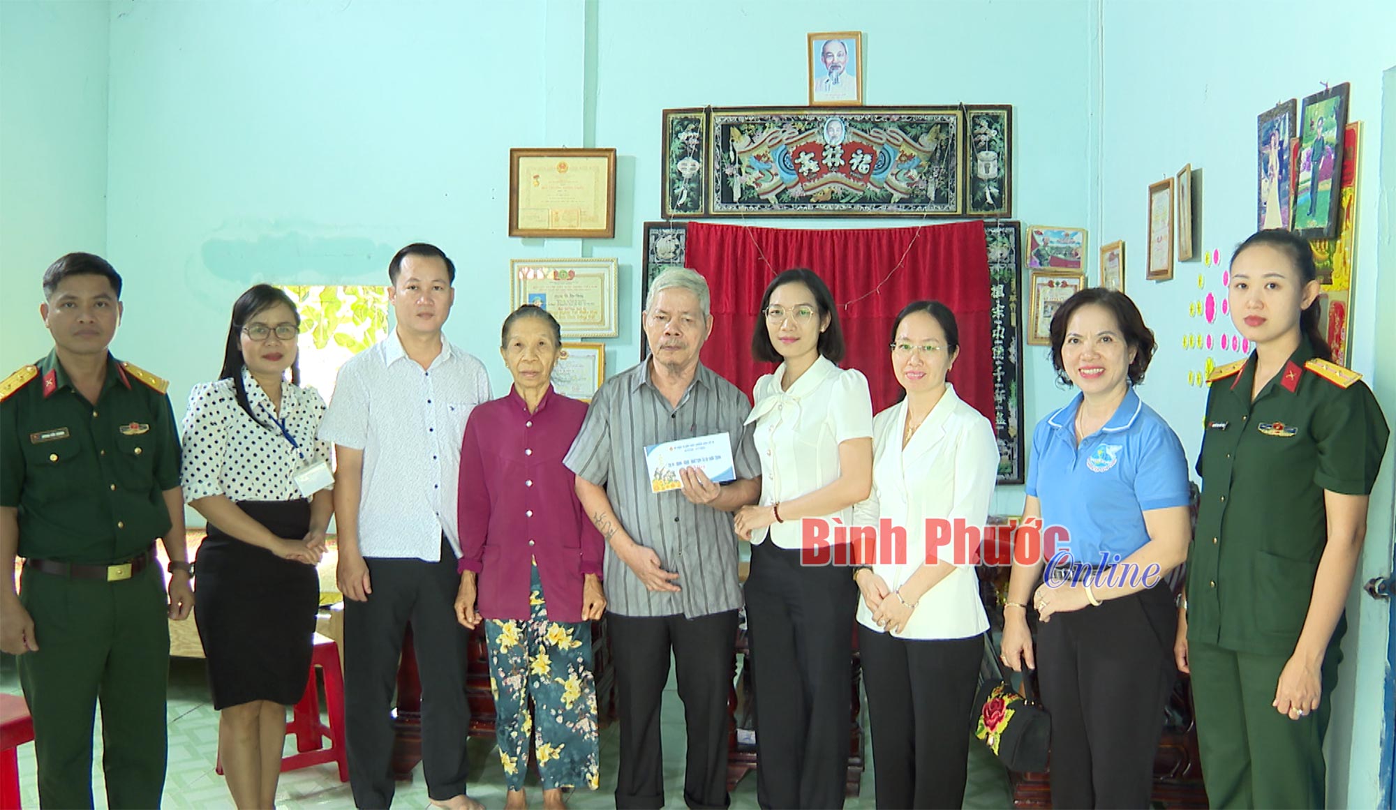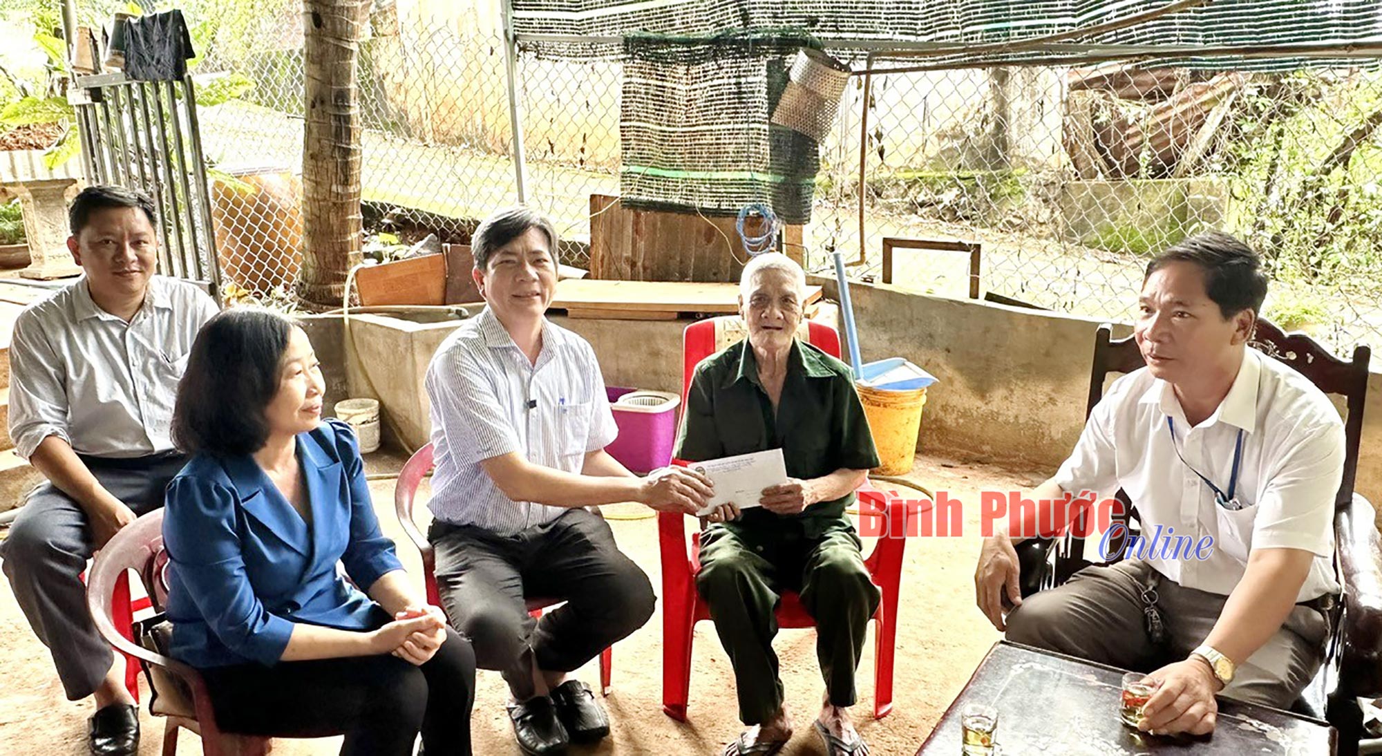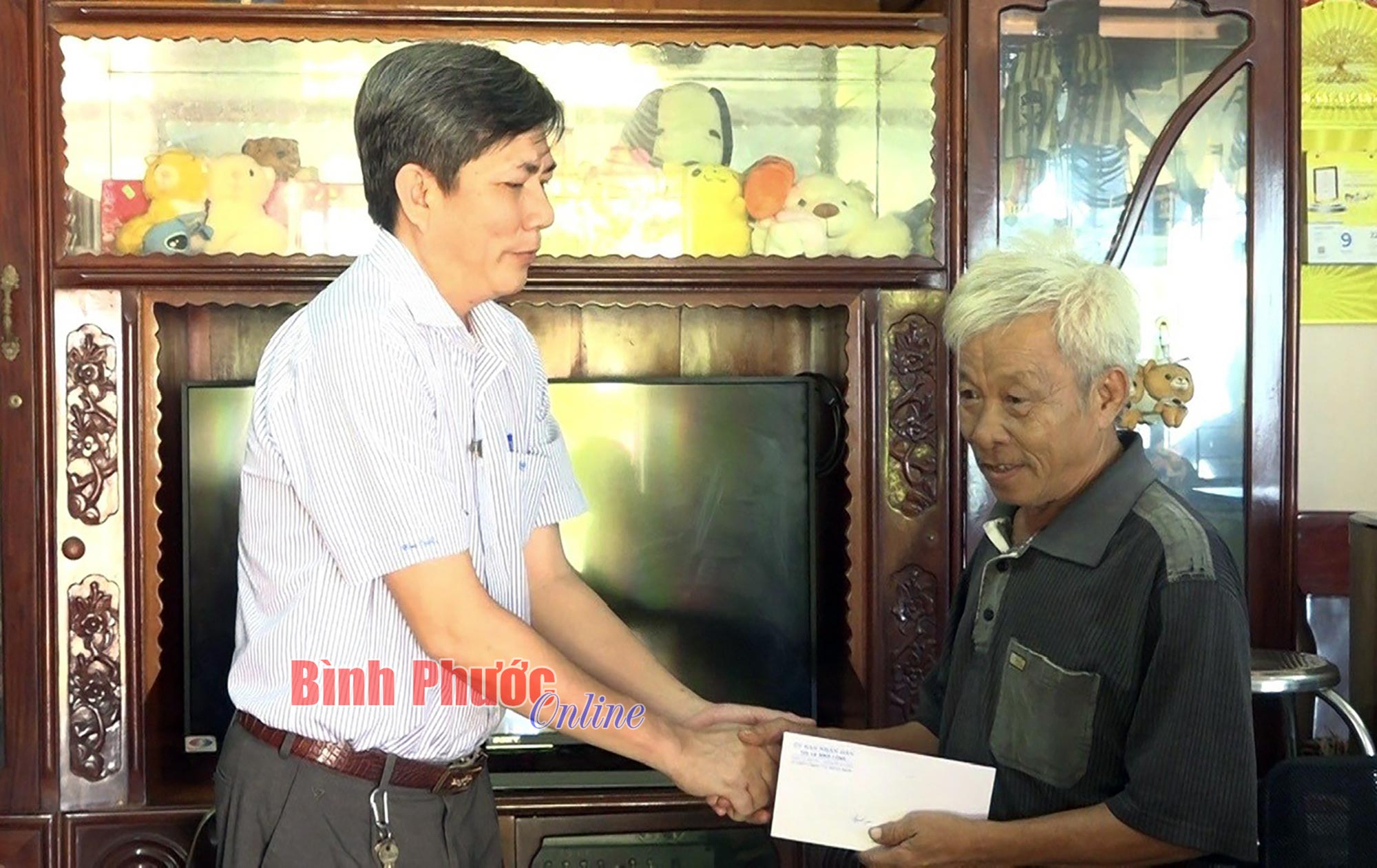 Đoàn lãnh đạo thị xã Bình Long đến thăm, tặng quà thương binh Vũ Đức Thảo, ở ấp Vườn Rau, xã Thanh Phú