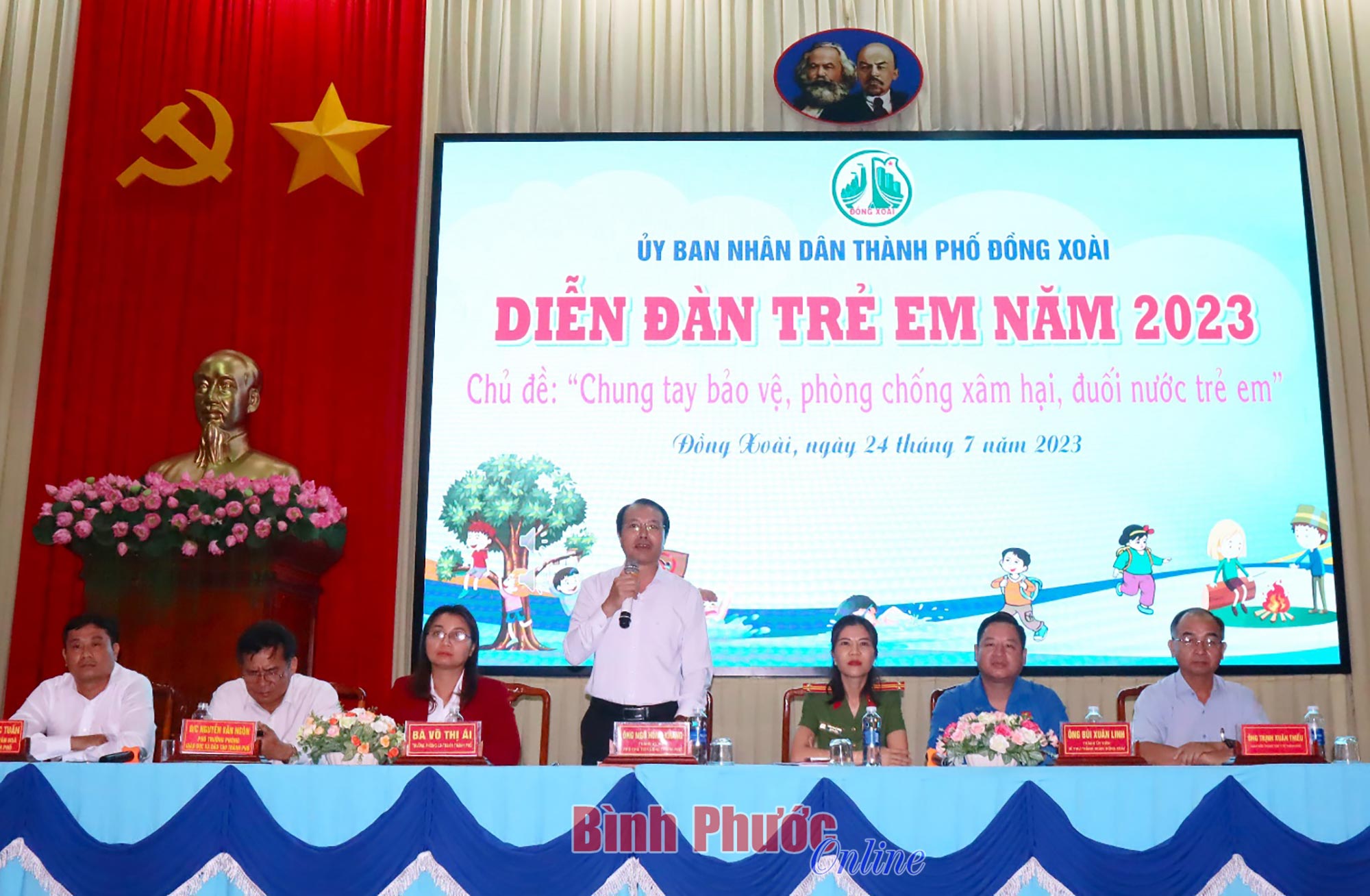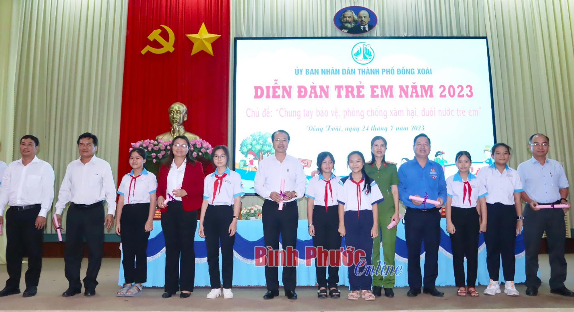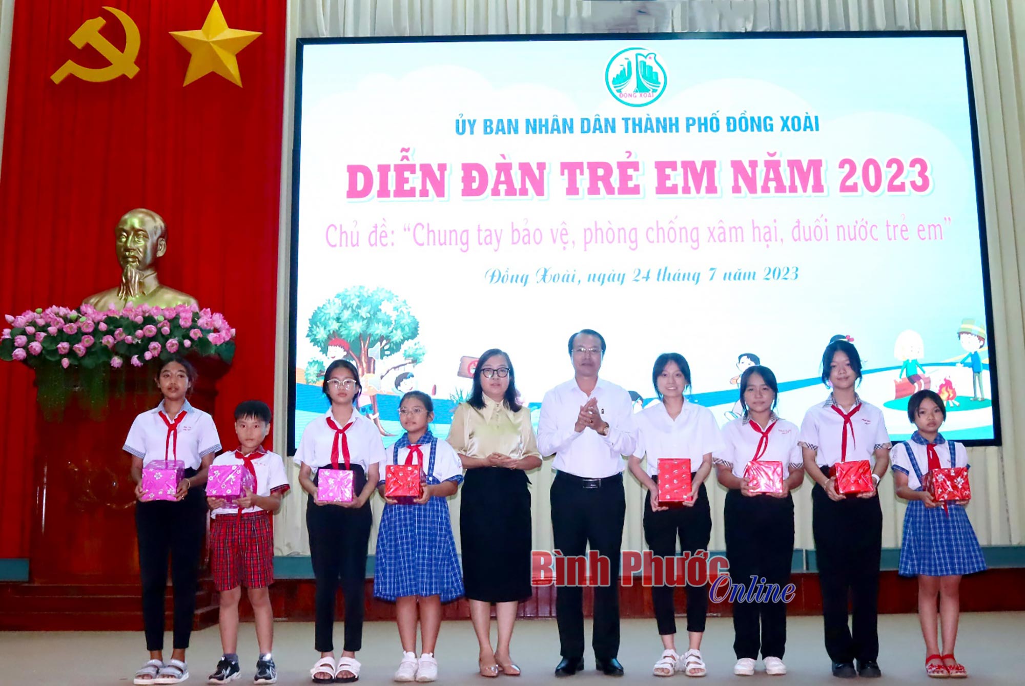 Lãnh đạo UBND thành phố Đồng Xoài và các cơ quan, đơn vị nhận thông điệp từ trẻ em thành phố