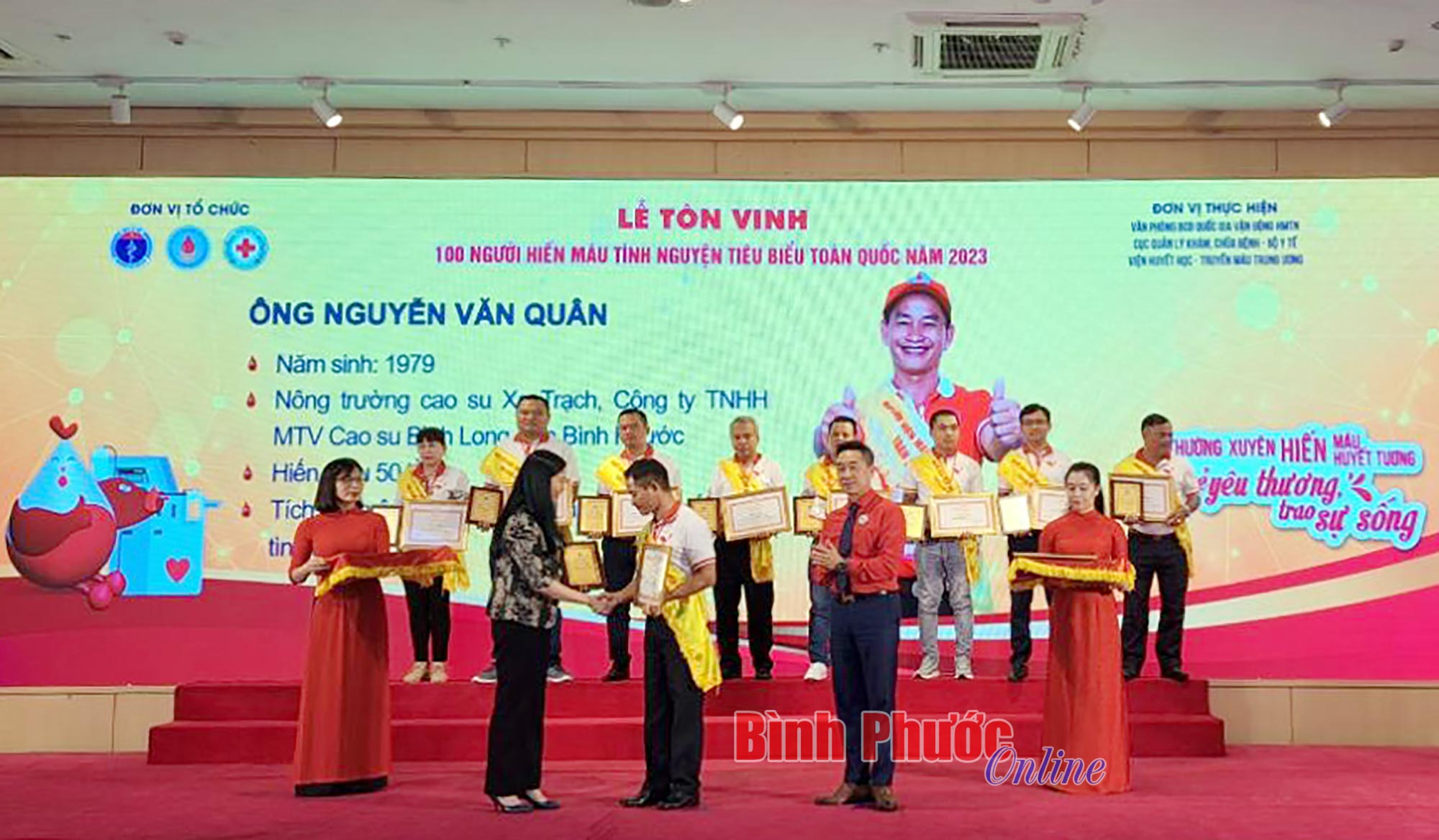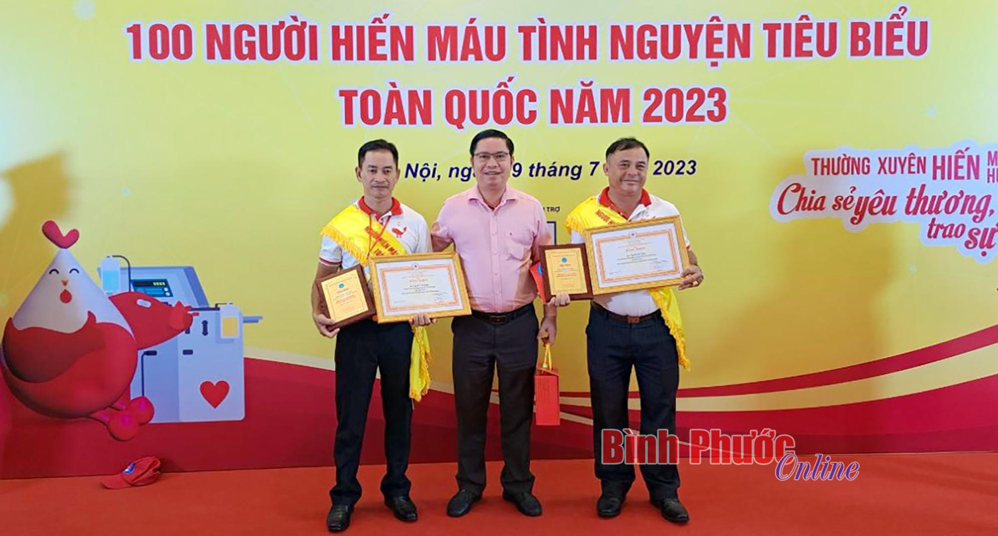 Ông Nguyễn Văn Quân và Nguyễn Bá Nhàn là 2 đại biểu hiến máu tình nguyện tiêu biểu của Bình Phước được tôn vinh