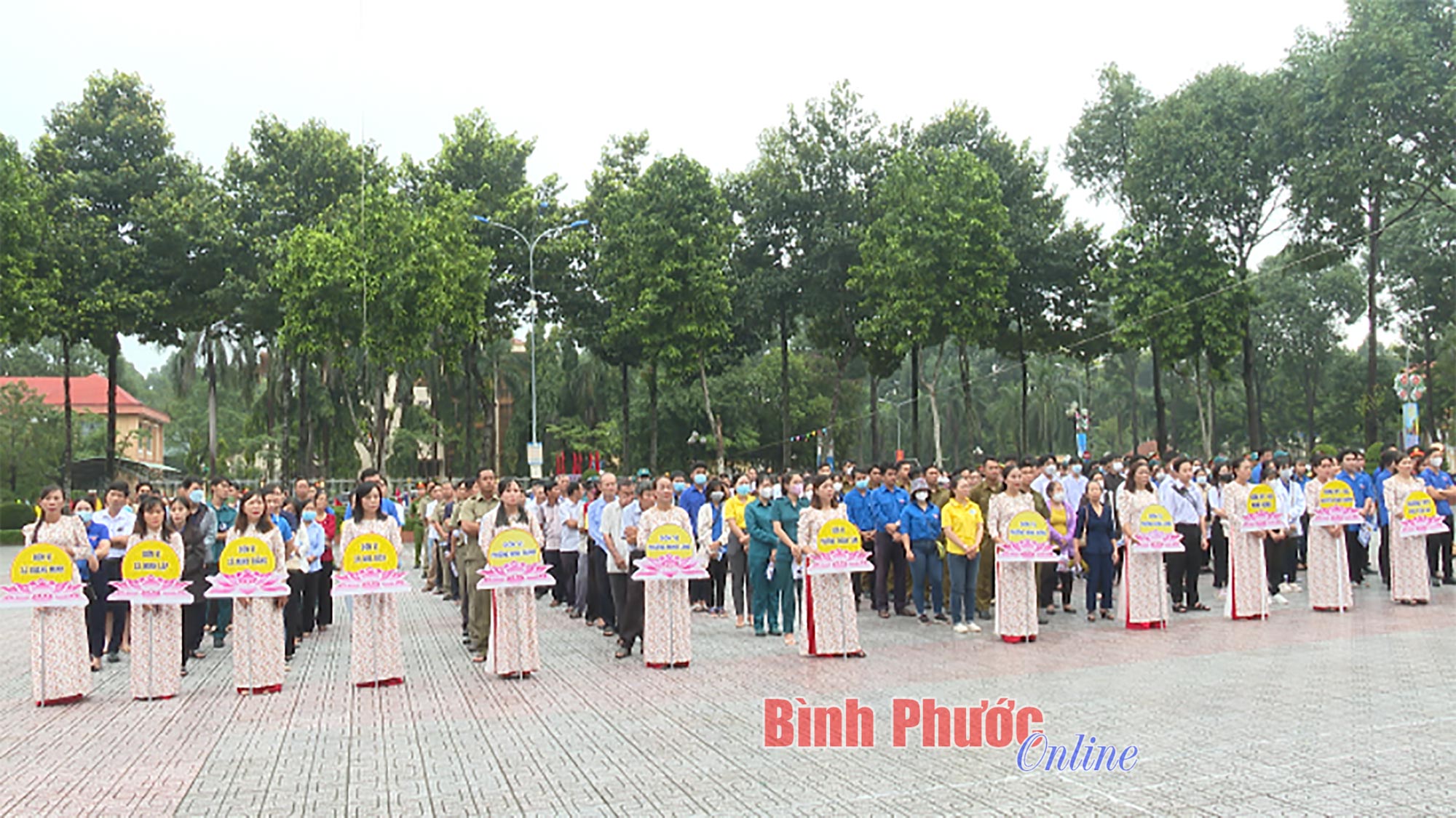 Cán bộ, đoàn viên thanh niên, học sinh và nhân dân thị xã Chơn Thành tham dự buổi lễ