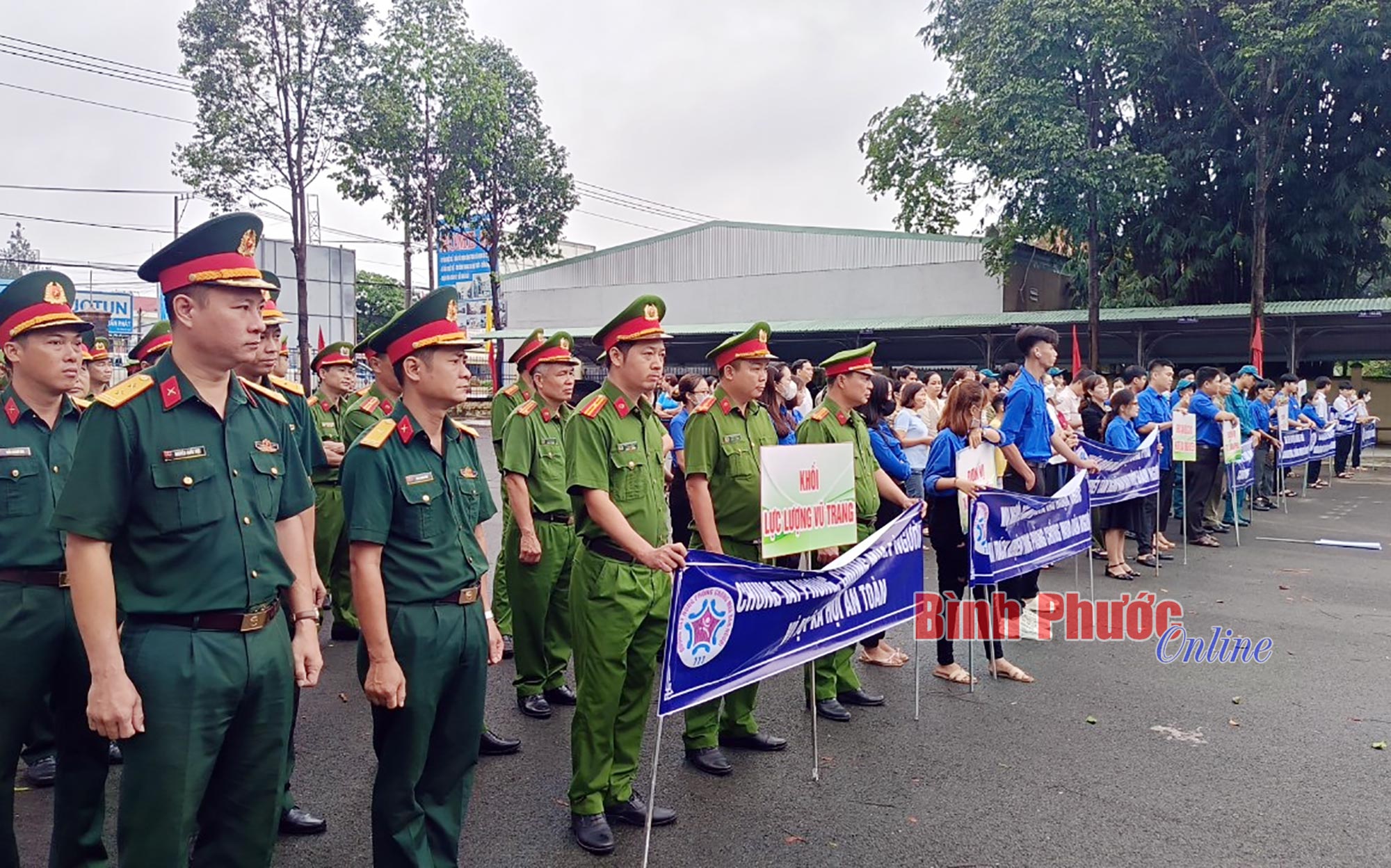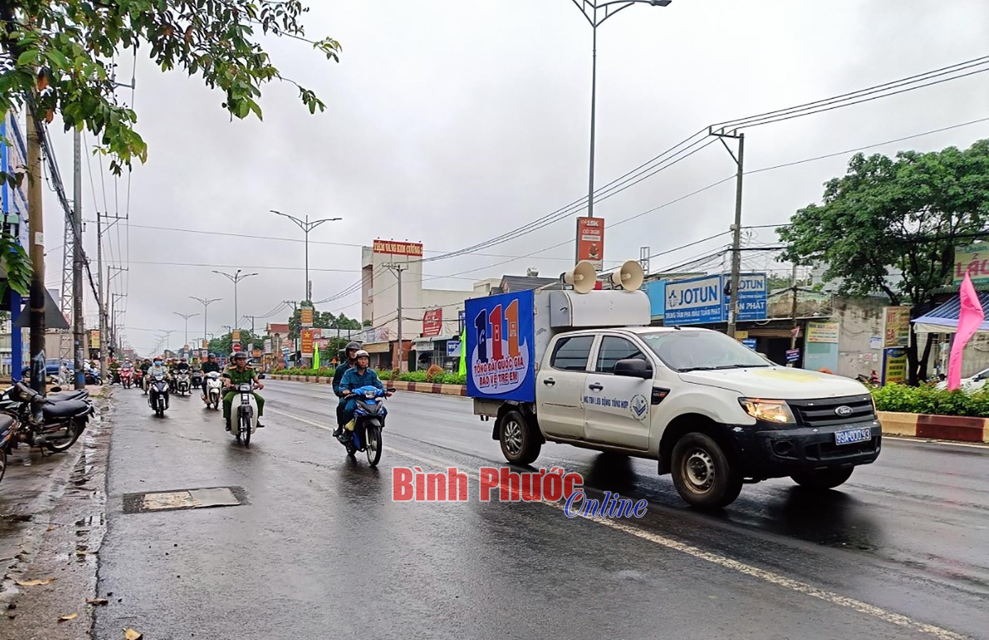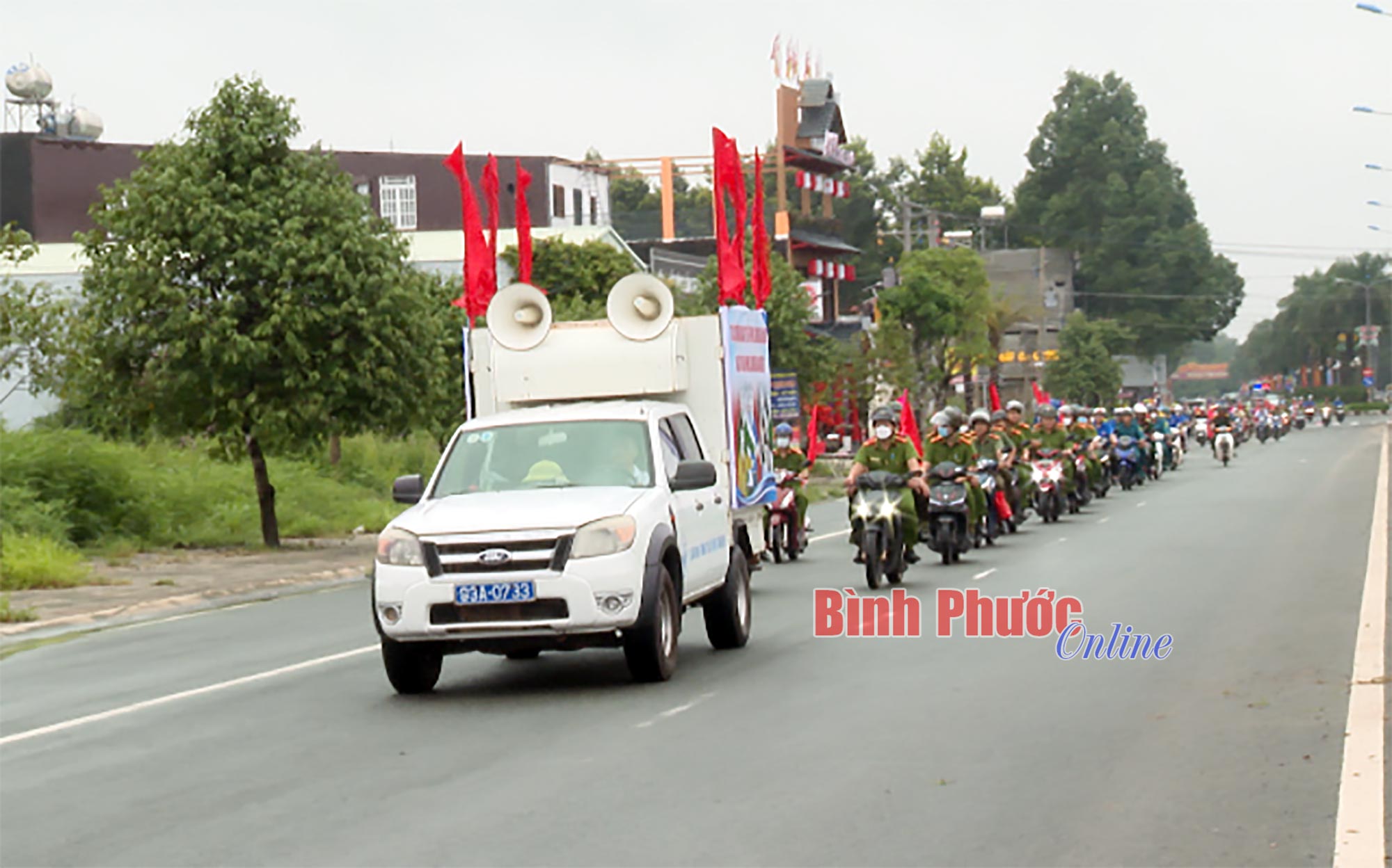 Ngay sau buổi lễ, lực lượng khối đông đã diễu hành trên ĐT741 để kêu gọi người dân tích cực hưởng ứng Ngày phòng, chống mua bán người năm 2023.