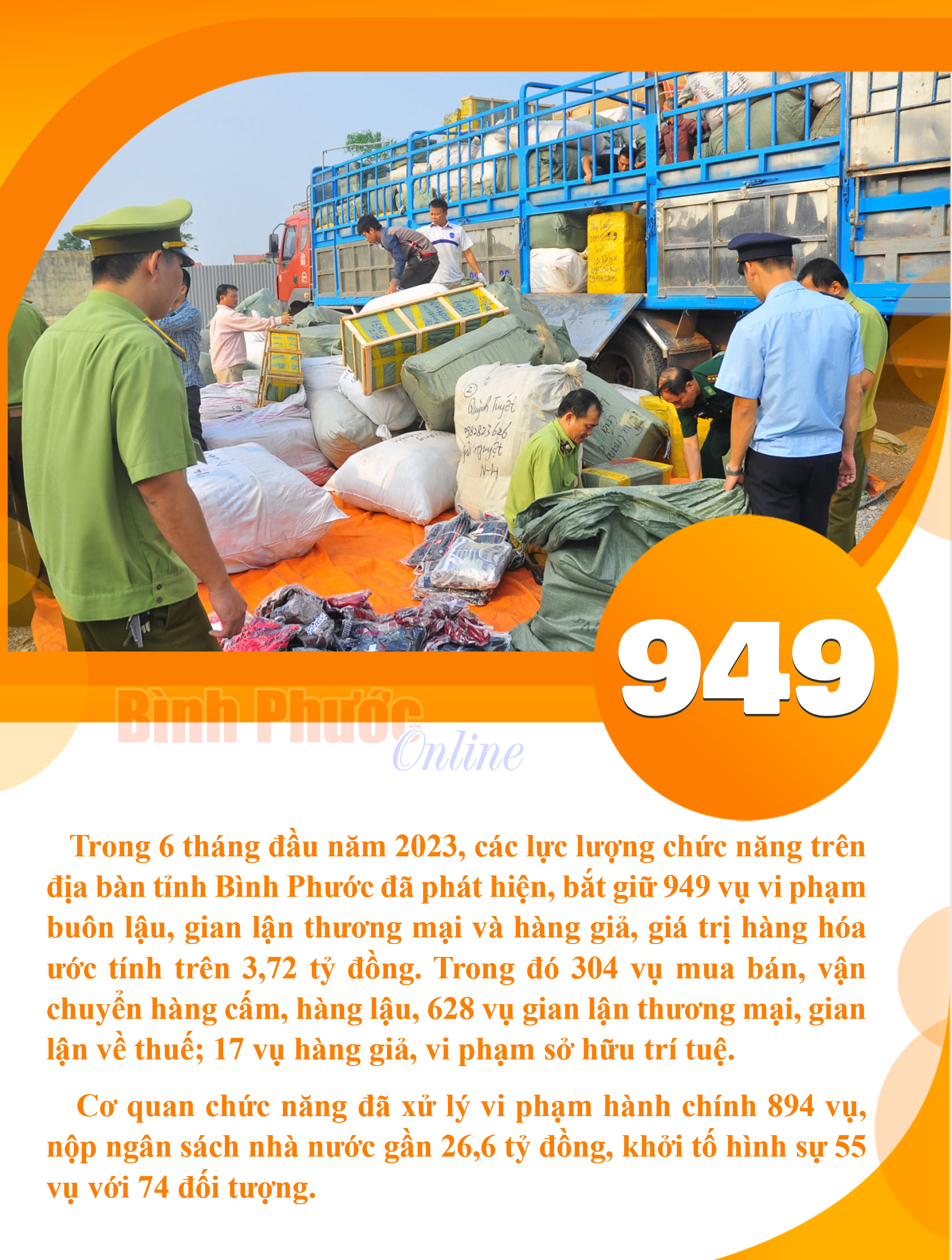 6 tháng đầu năm 2023, Bình Phước phát hiện, bắt giữ 949 vụ vi phạm buôn lậu, gian lận thương mại và hàng giả