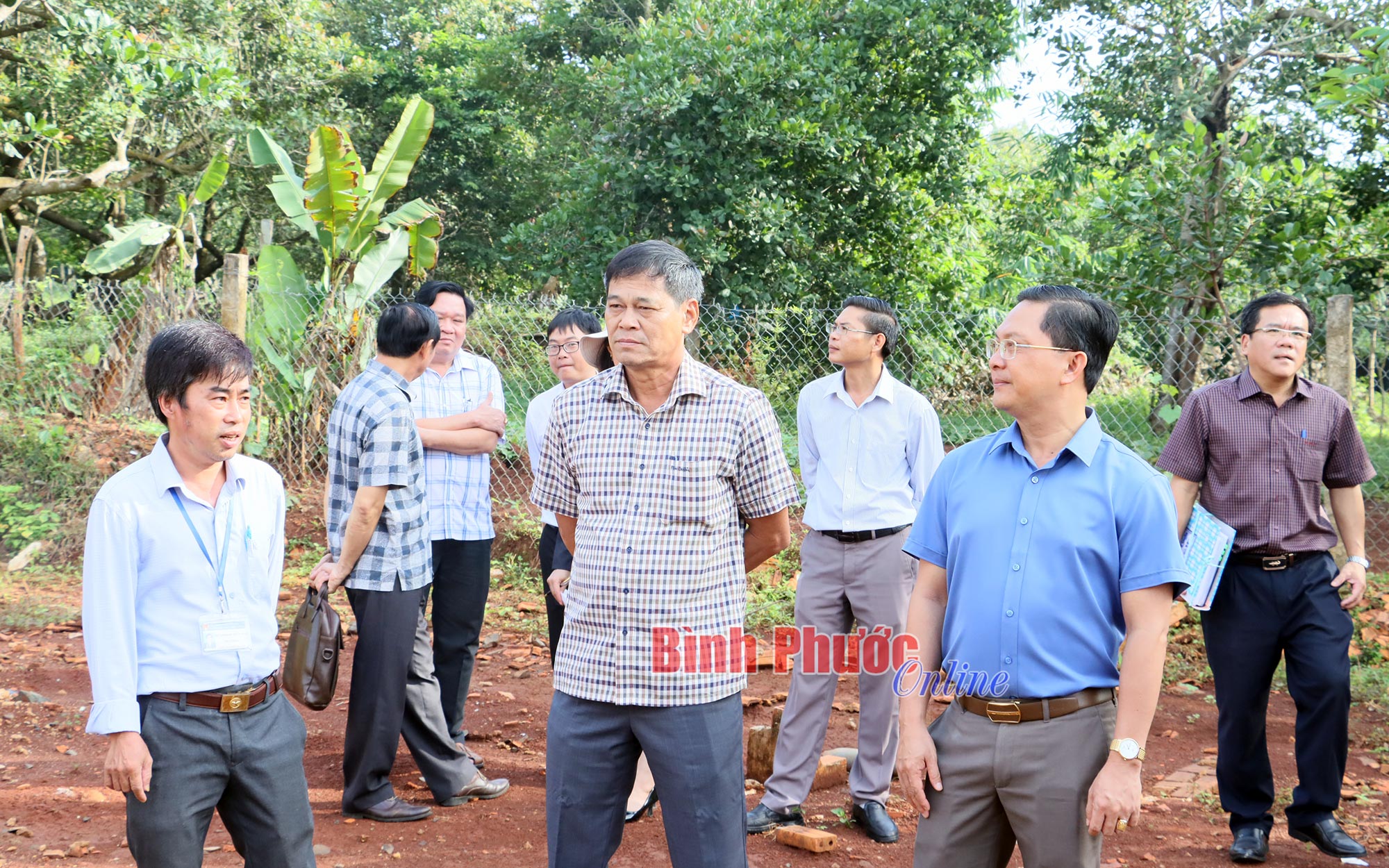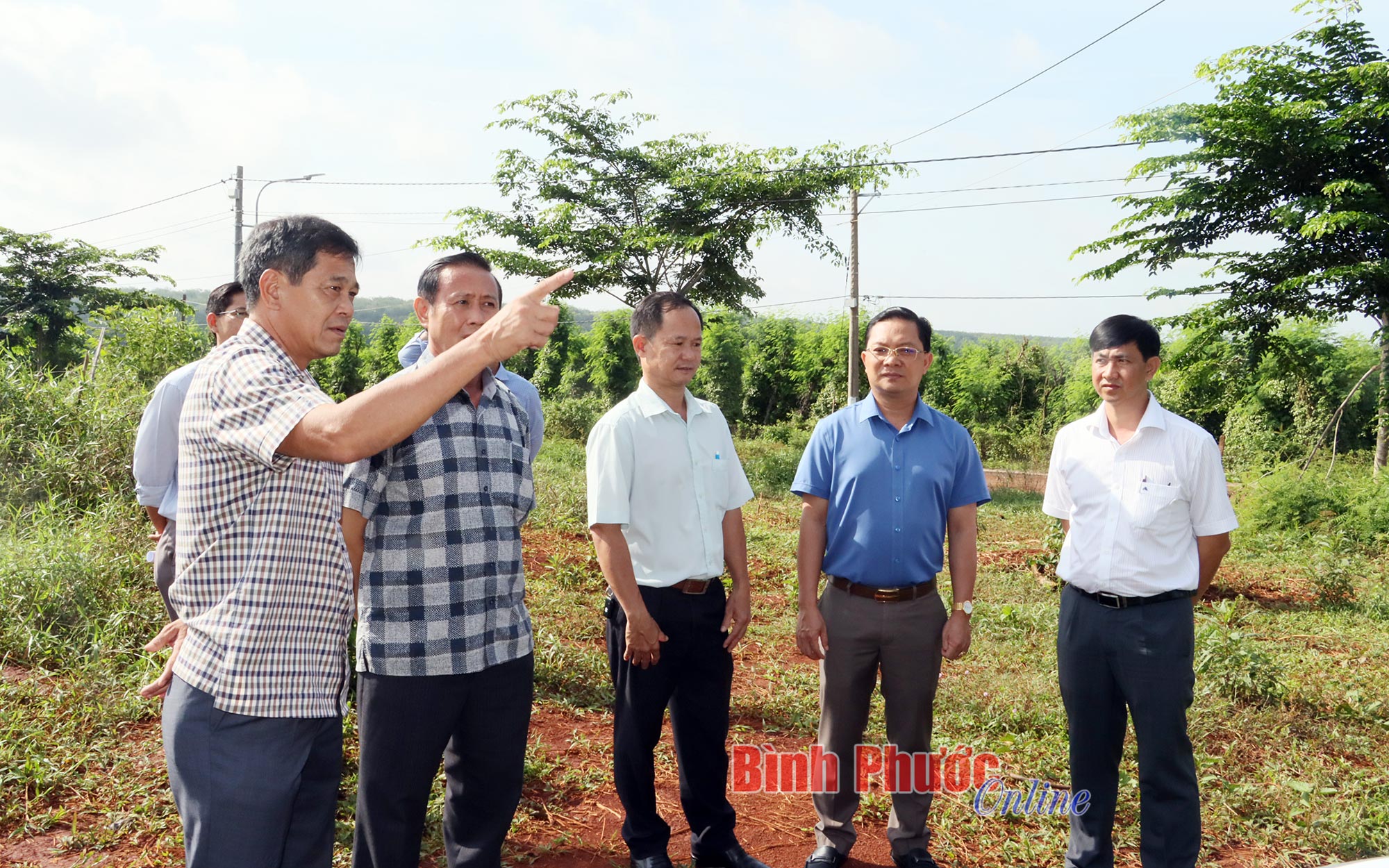 Đoàn khảo sát địa điểm dự kiến xây trường mới tại thôn Bù Tam, trước khi di dời từ điểm trường Thiện Hưng B