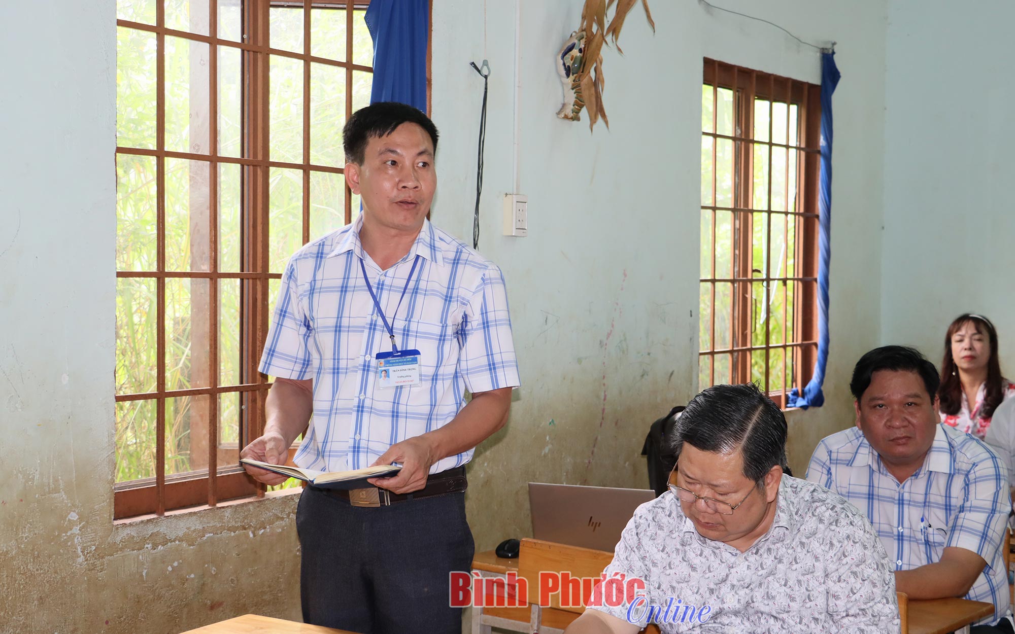 Lãnh đạo phòng Giáo dục và Ban quản lý dự án huyện Bù Đốp báo cáo tình hình tiến độ triển khai việc xây dựng các công trình phòng học