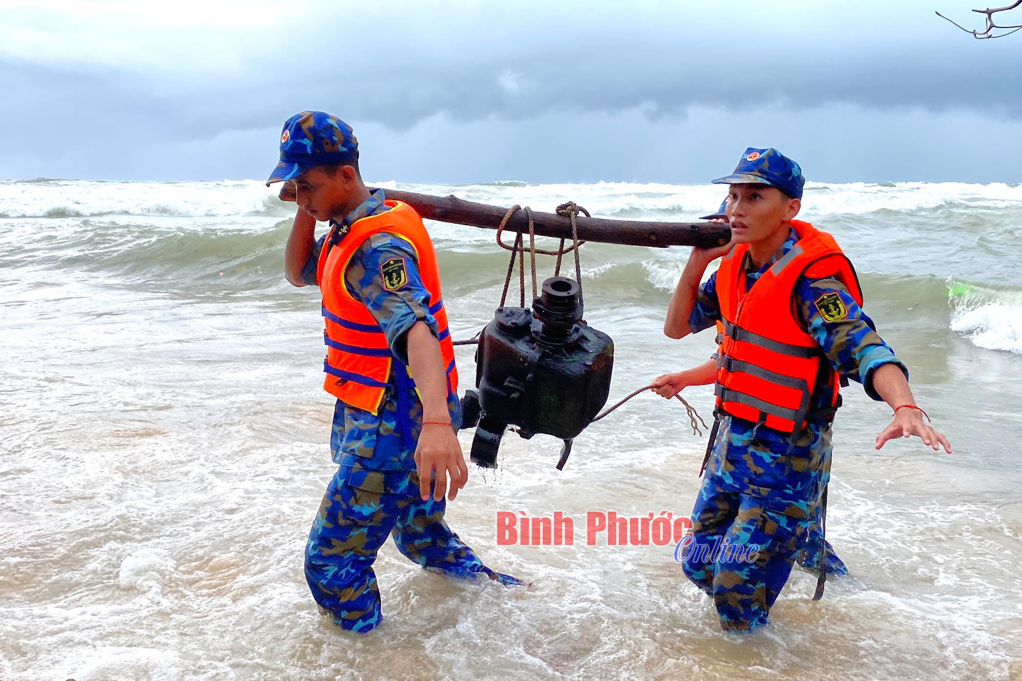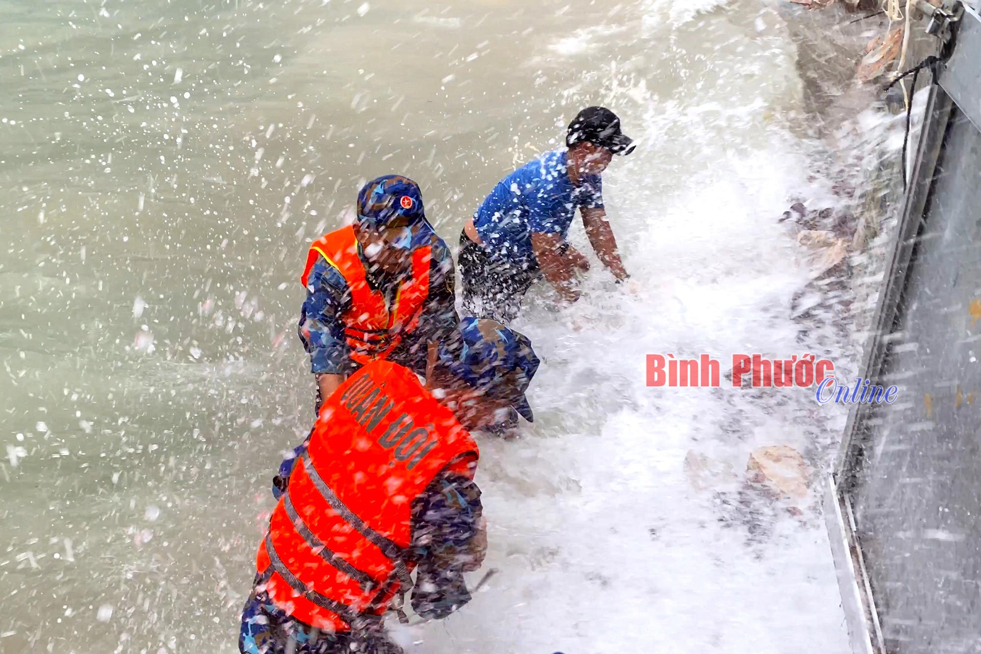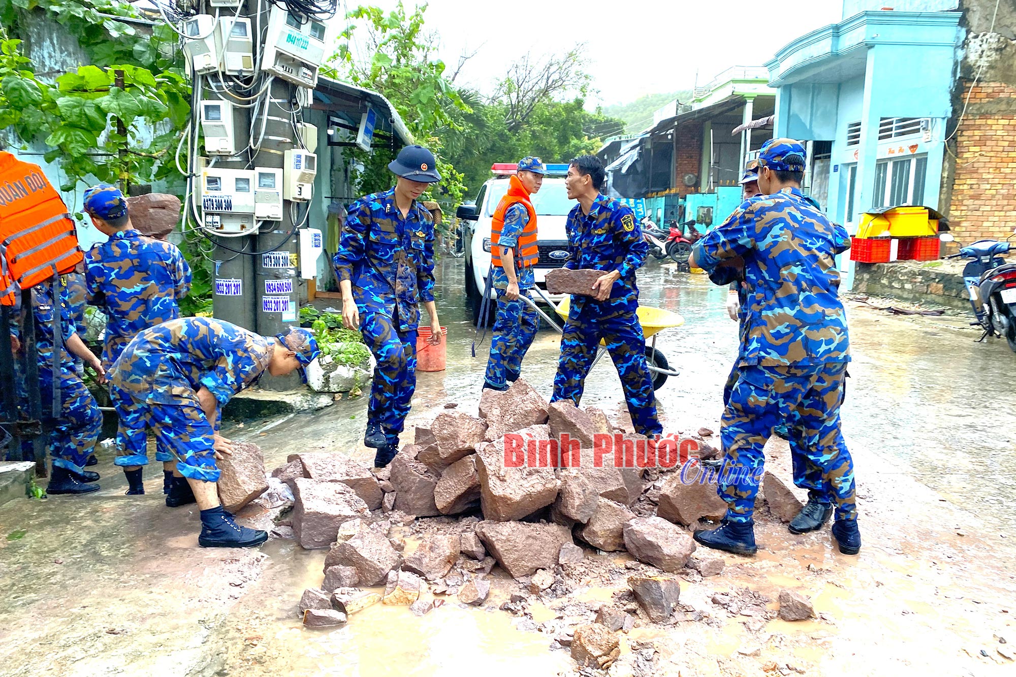 Nhận được thông tin, Vùng 5 Hải quân đã điều động gần 50 cán bộ, chiến sĩ nhanh chóng đến hiện trường phối hợp với các lực lượng tại chỗ tổ chức di chuyển tài sản của người dân ra khỏi vùng sạt lở; đồng thời, chằng chống nhà cửa, vận chuyển hàng chục khối đá hộc kè bờ biển.