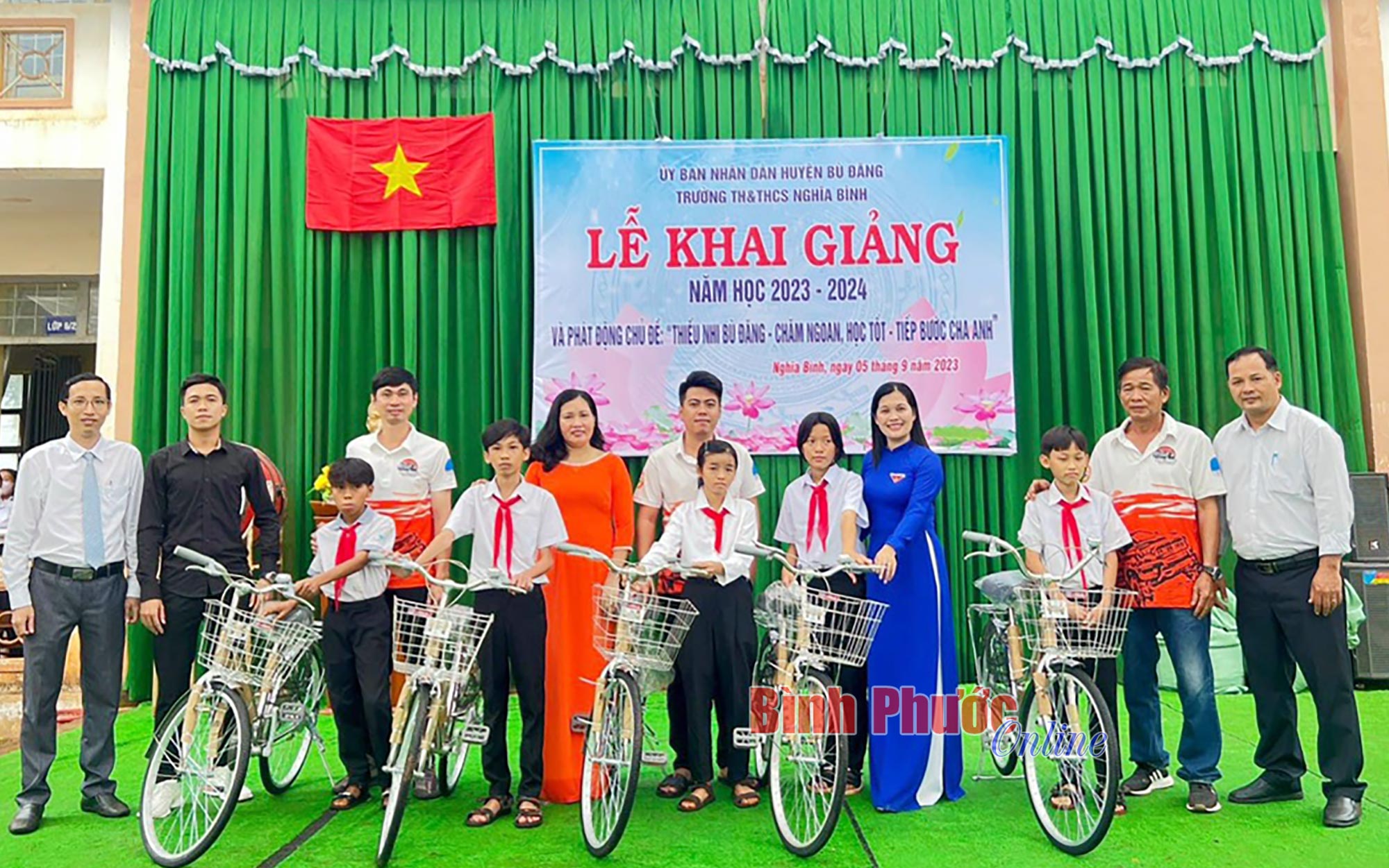 Đại diện CLB trao tặng 30 xe đạp tiếp sức cho em đến trường nhân dịp khai giảng năm học 2023-2024