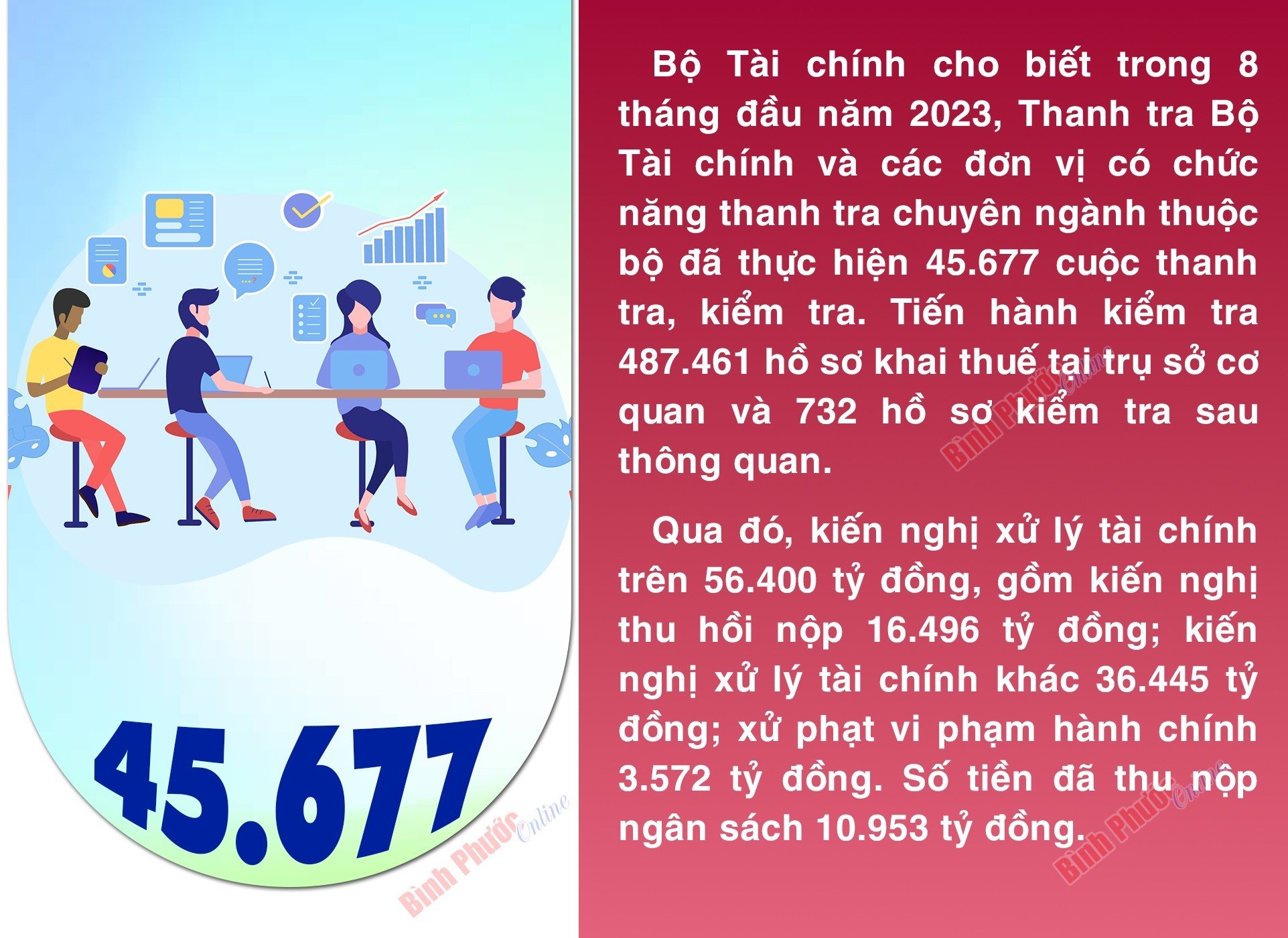 8 tháng năm 2023, thanh tra ngành Tài chính thực hiện 45.677 cuộc thanh tra, kiểm tra