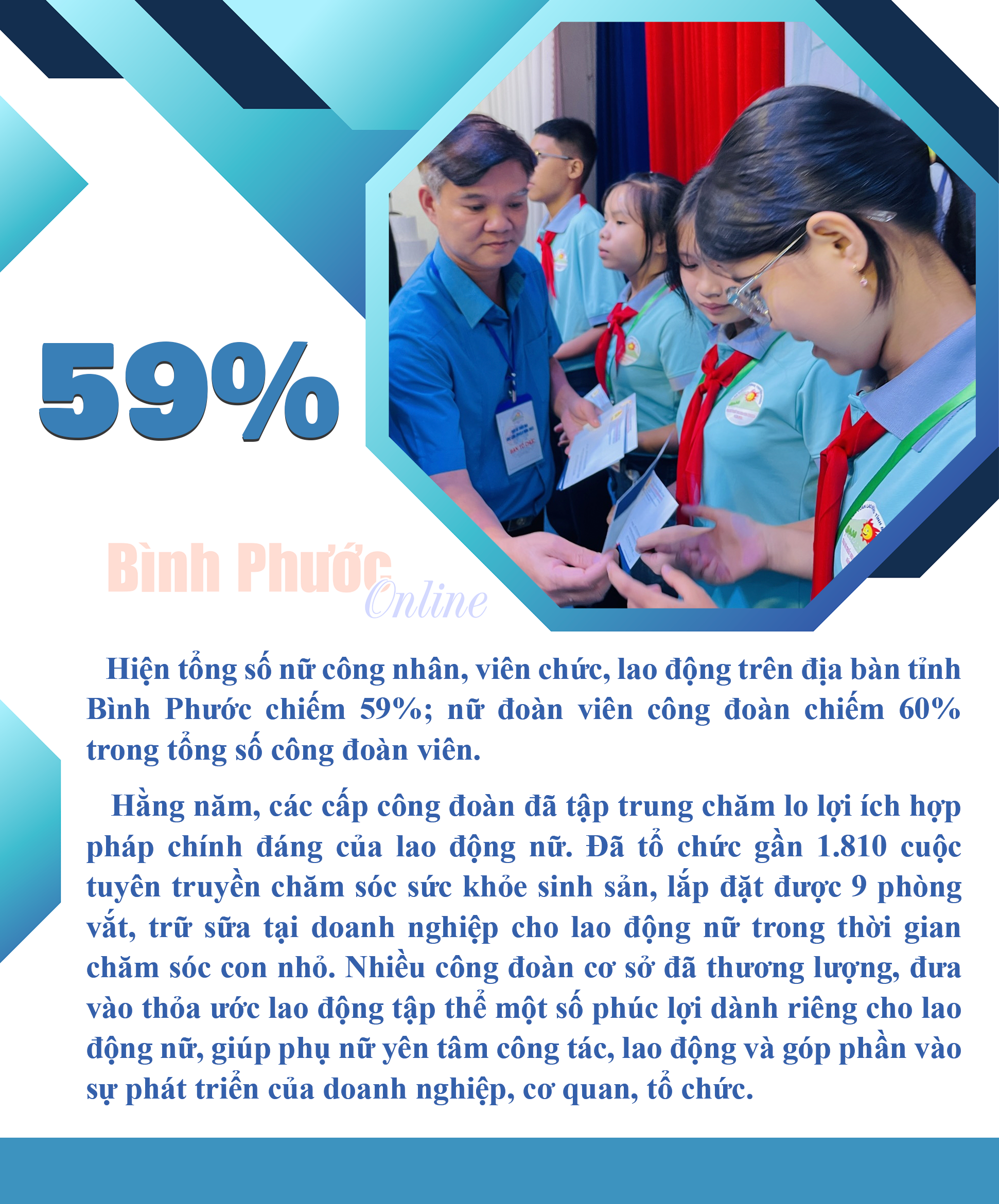Tổng số nữ công nhân, viên chức, lao động trên địa bàn tỉnh Bình Phước chiếm 59%