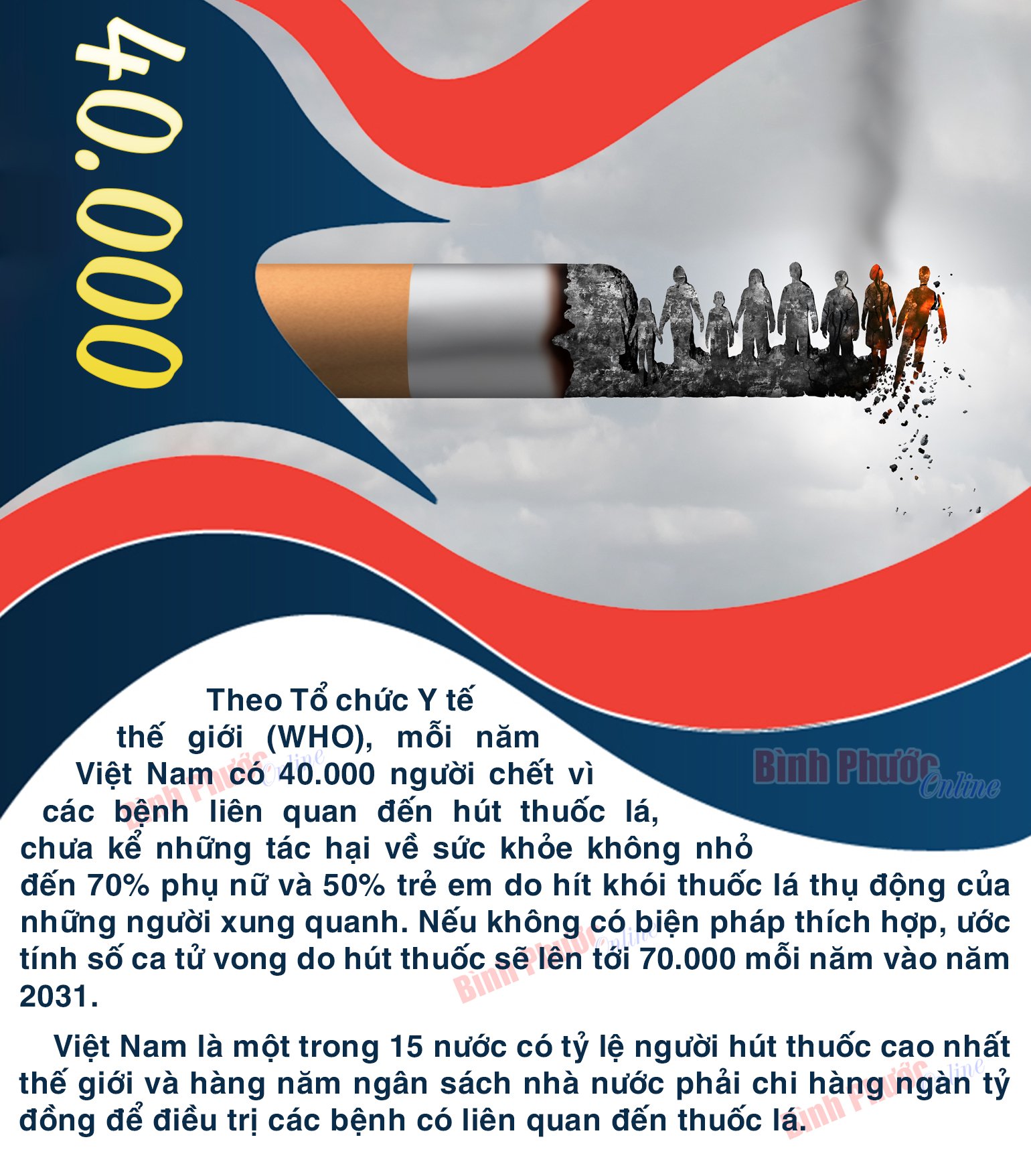 Mỗi năm Việt Nam có 40.000 người chết vì các bệnh liên quan đến hút thuốc lá