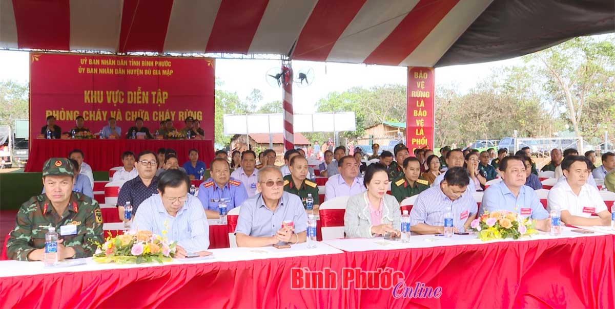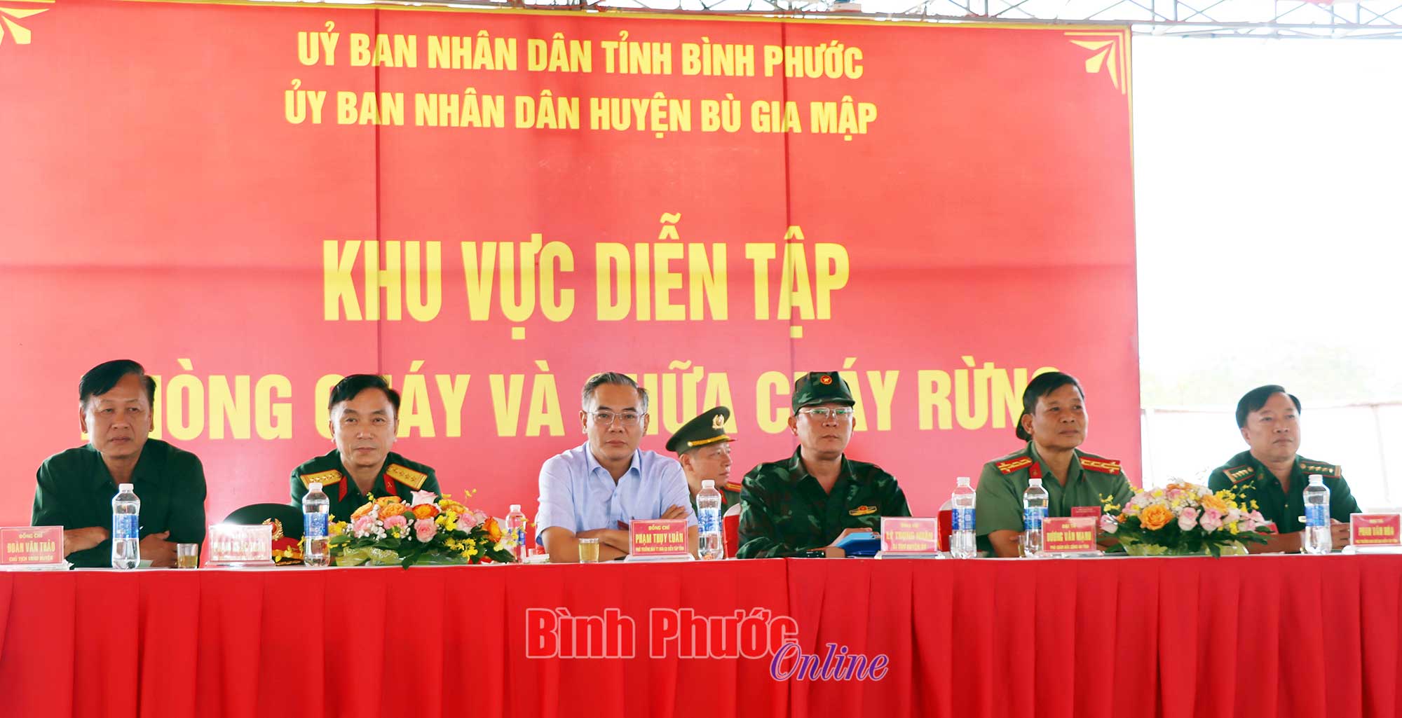 Phát biểu khai mạc buổi diễn tập, Bí thư Huyện ủy Bù Gia Mập Lý Trọng Nhân nhấn mạnh: Ứng phó cháy rừng và tìm kiếm cứu nạn là nhiệm vụ hết sức quan trọng đối với các địa phương nói chung, huyện Bù Gia Mập nói riêng, đặc biệt là vào mùa khô hàng năm nhằm bảo vệ, phát triển nguồn tài nguyên rừng, góp phần bảo vệ môi trường sinh thái, phát triển kinh tế - xã hội.